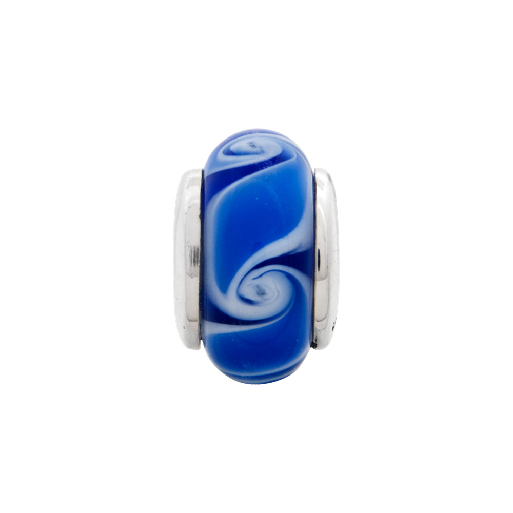 Dark Blue Hand Blown Glass Kids Bead .925 Sterling Silver Reflection Beads