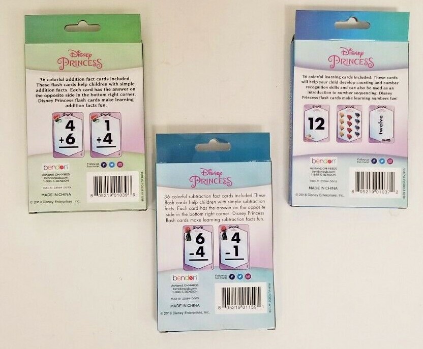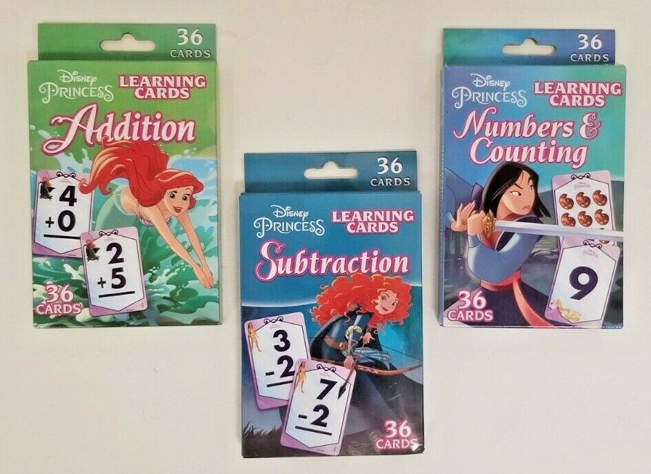 Set of Three Disney Princess Flash Cards Counting, Subtraction Addition