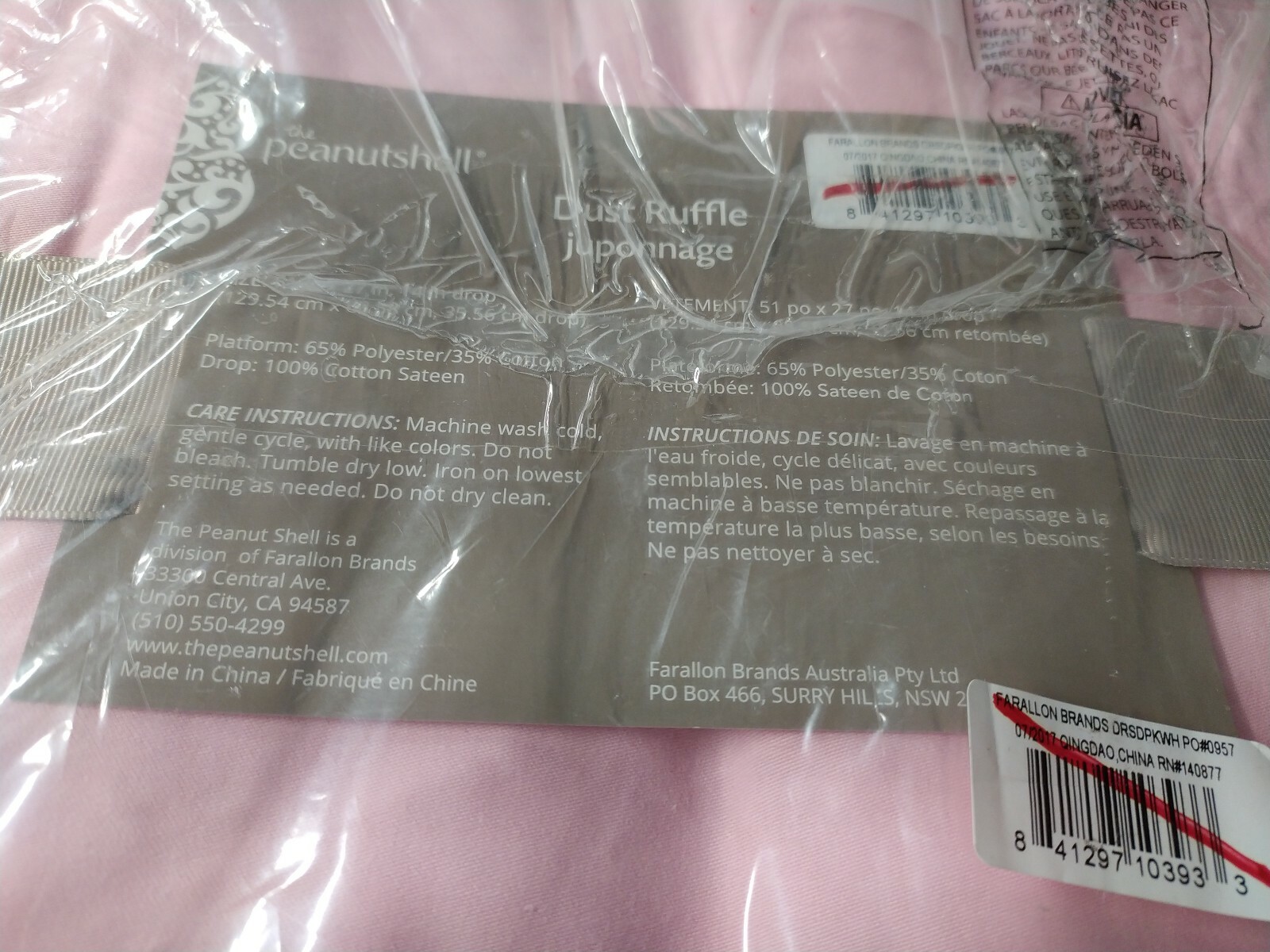The Peanutshell Dust Ruffle Juponnage size 51in x 27in 14 un drop Pink and white