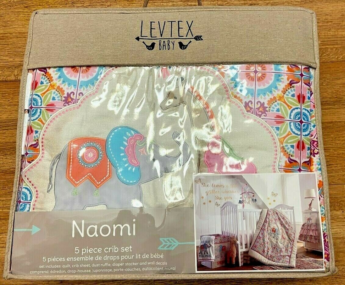 LEVTEX Baby NAOMI Crib Set Bedding Set Girls Jungle Theme Elephant Giraffe NWT