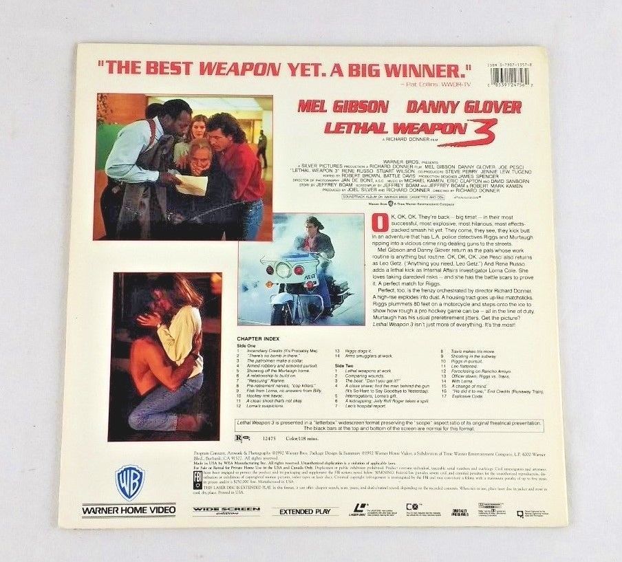 Lethal Weapon 3 Laserdisc Movie LD Gibson Glover Pesci Police Cop Comedy 1992