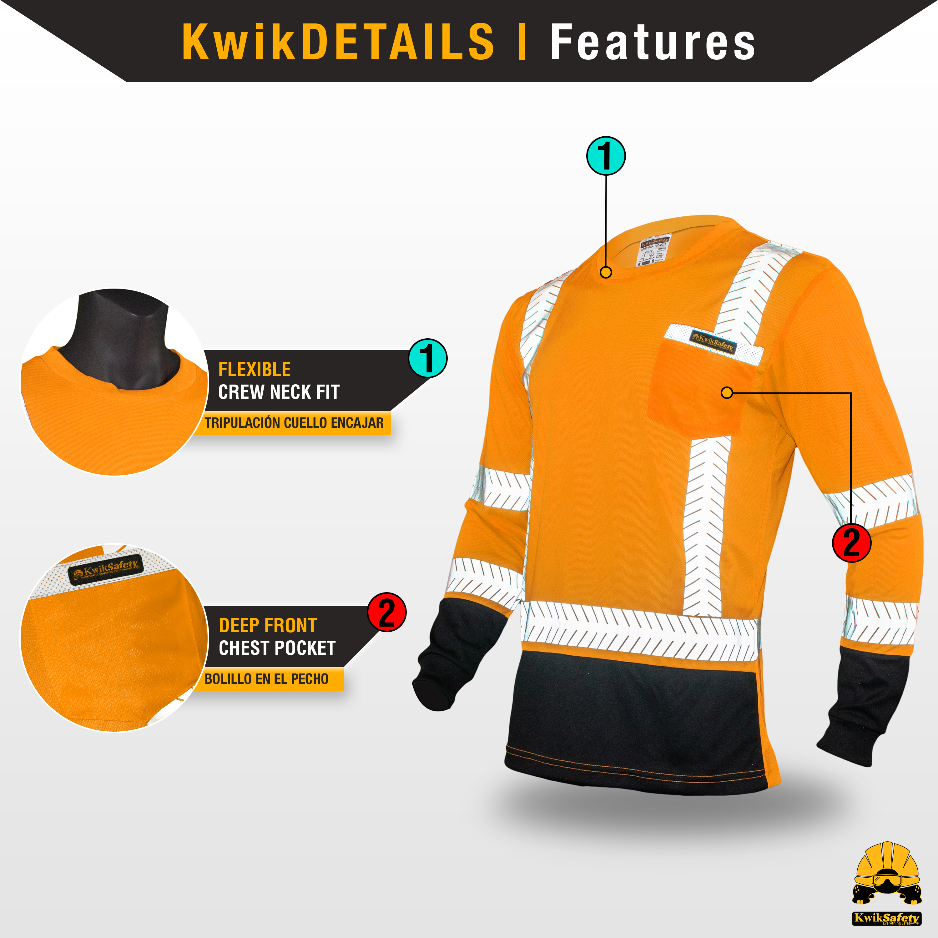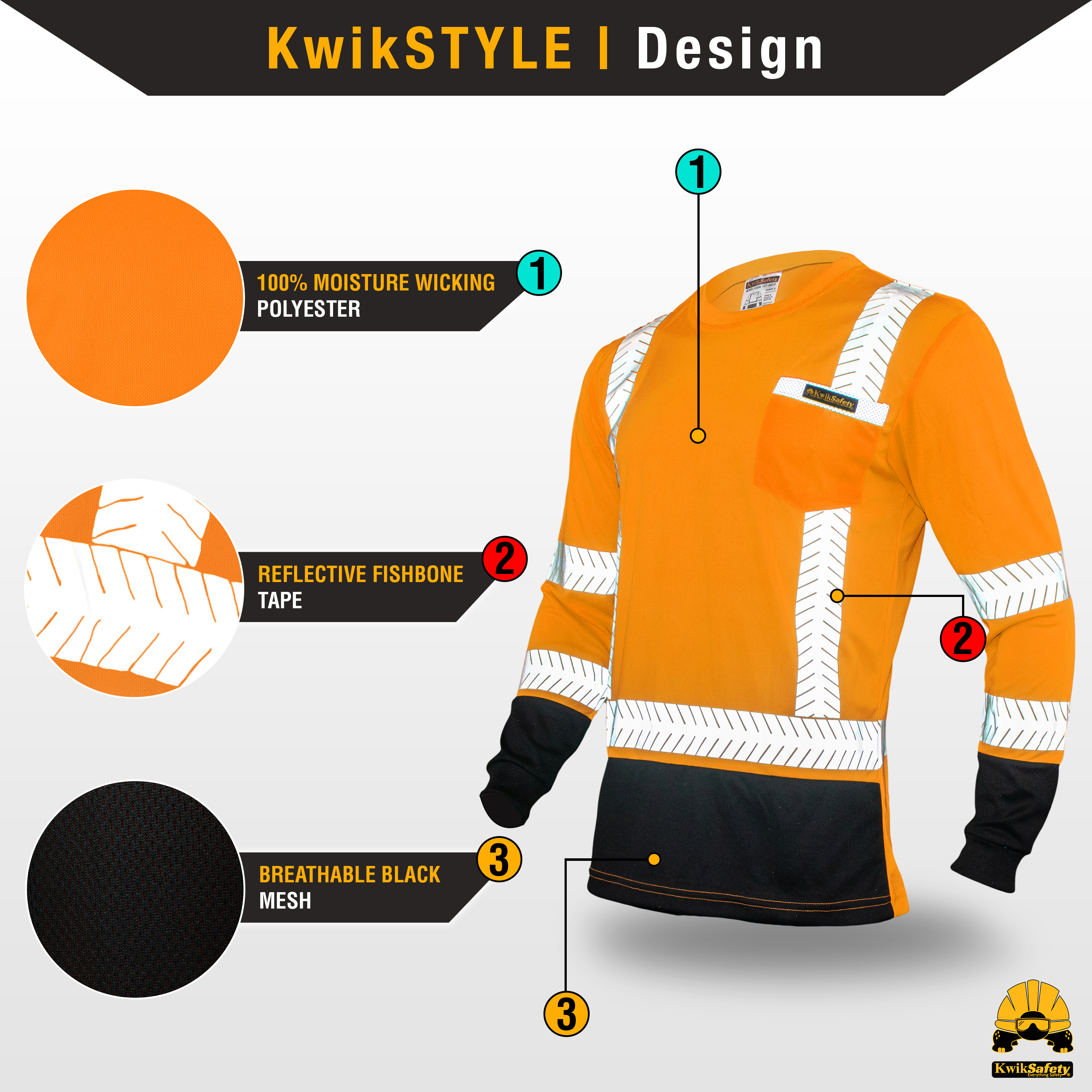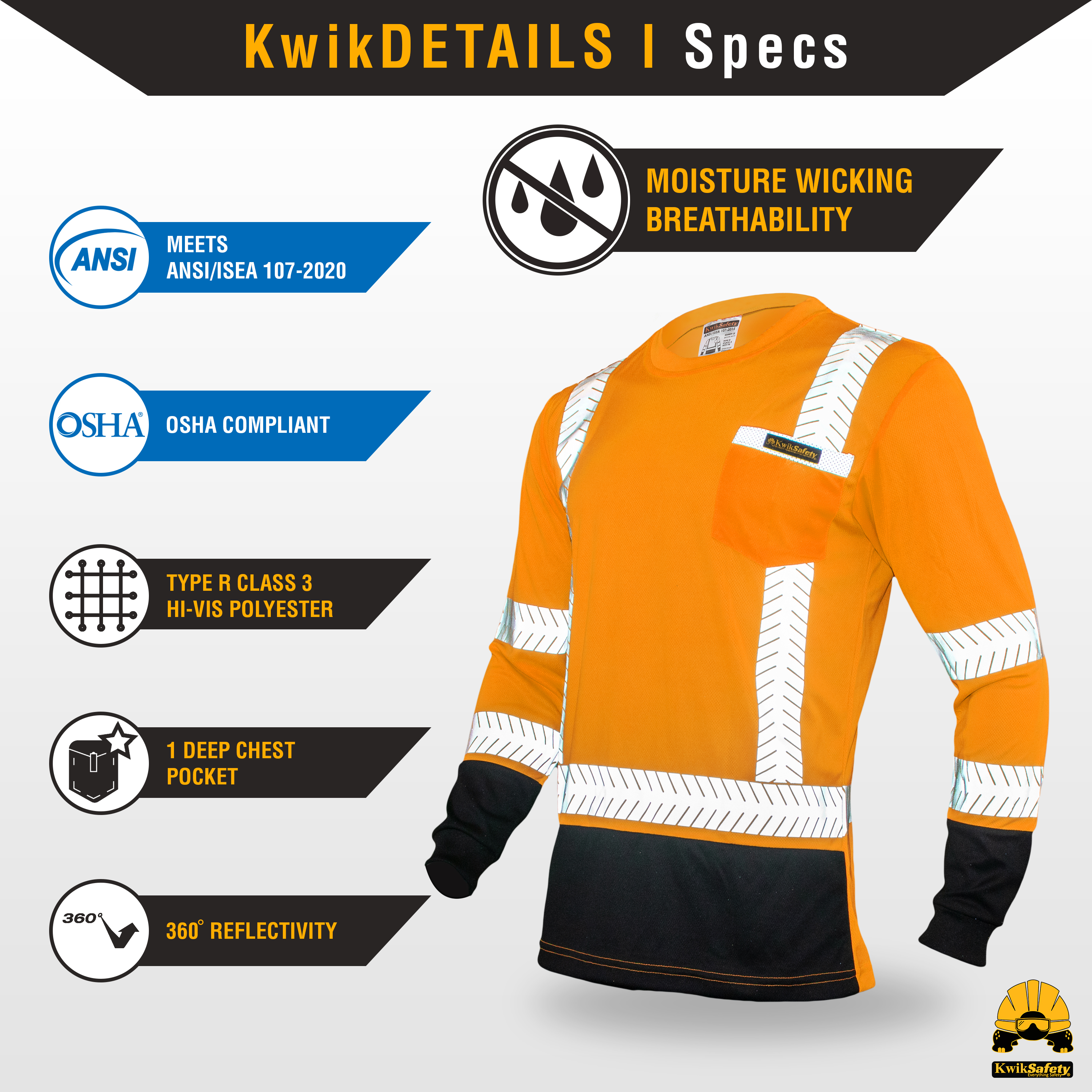 KwikSafety MECHANIC Hi Vis Reflective Long Sleeve ANSI Class 3 Safety Shirt