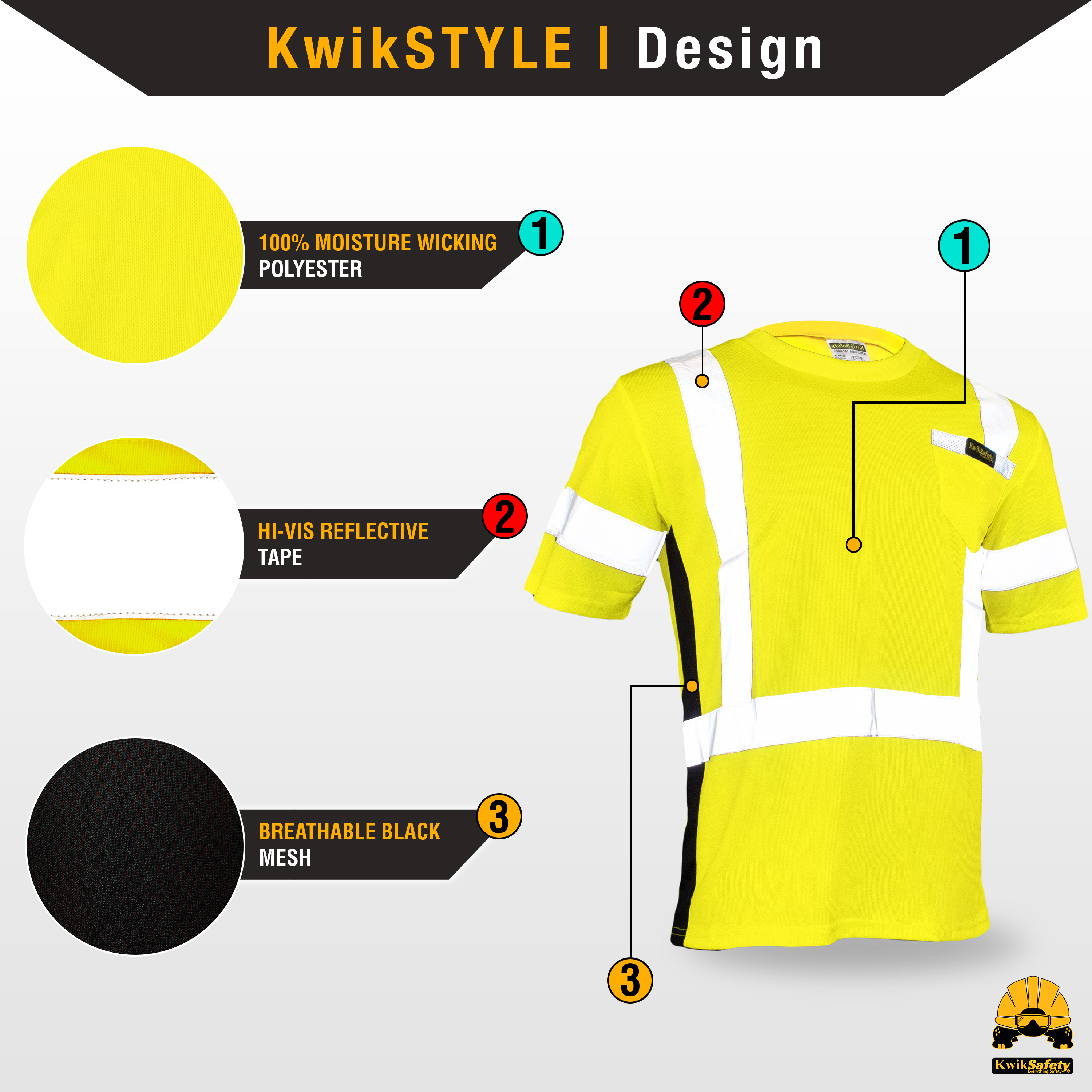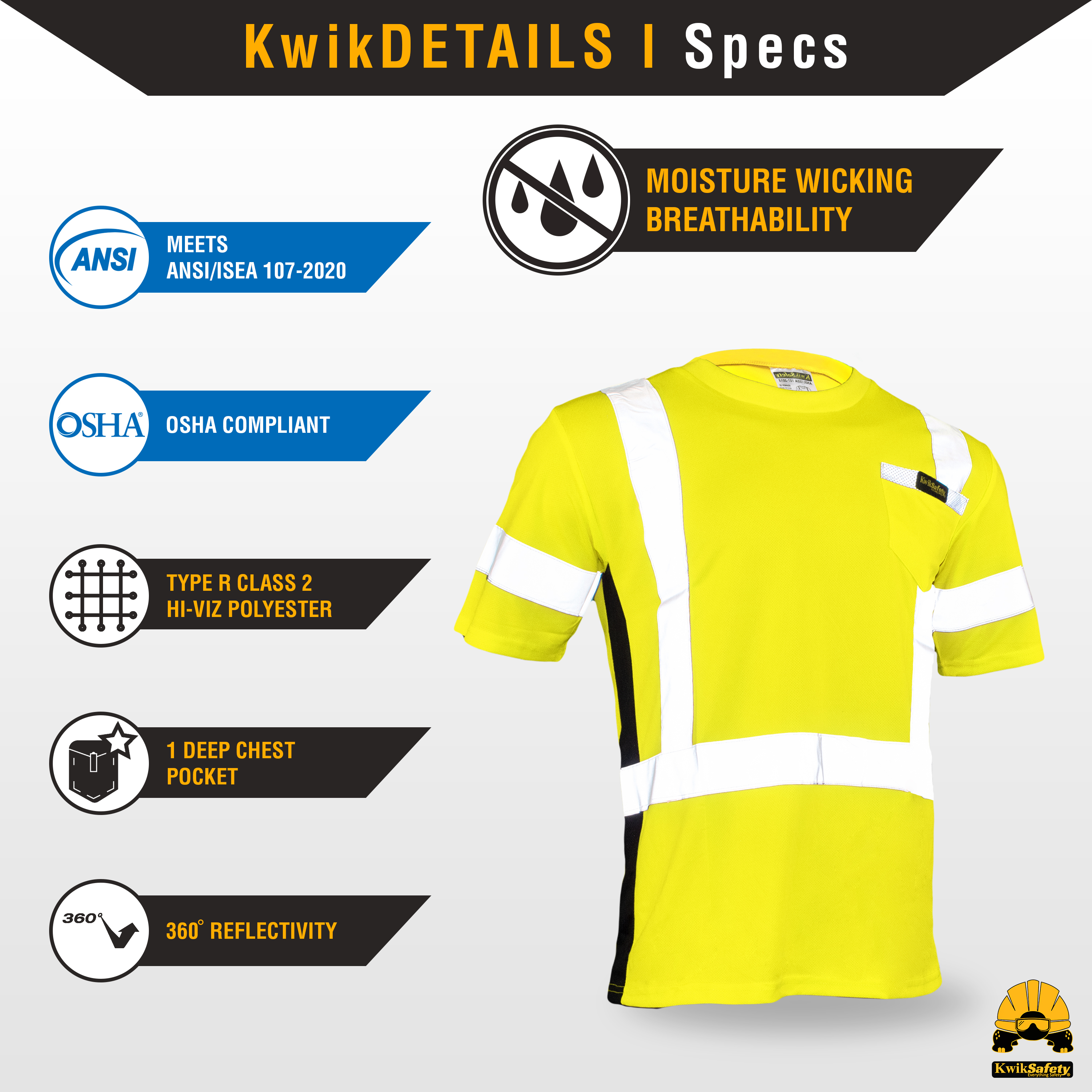 KwikSafety OPERATOR Hi Vis Reflective ANSI PPE Class 2 Short Sleeve Safety Shirt