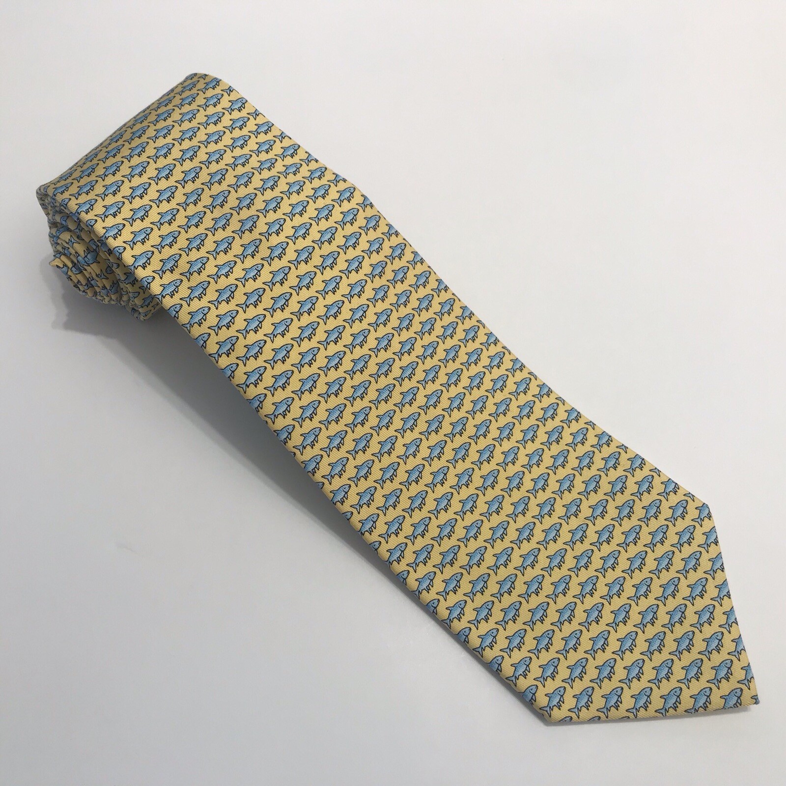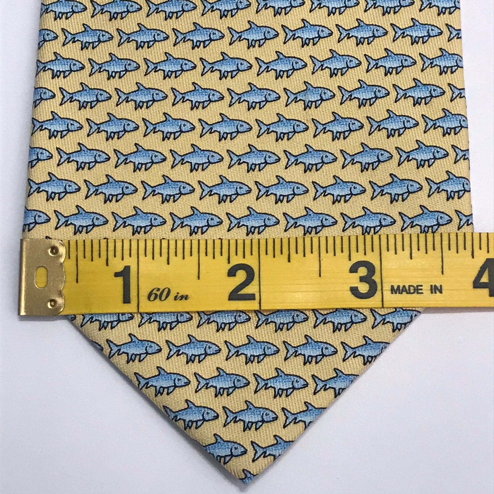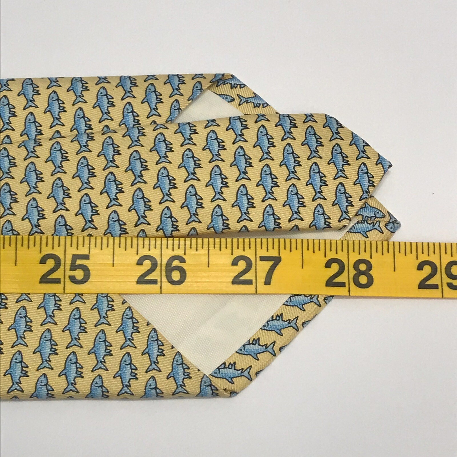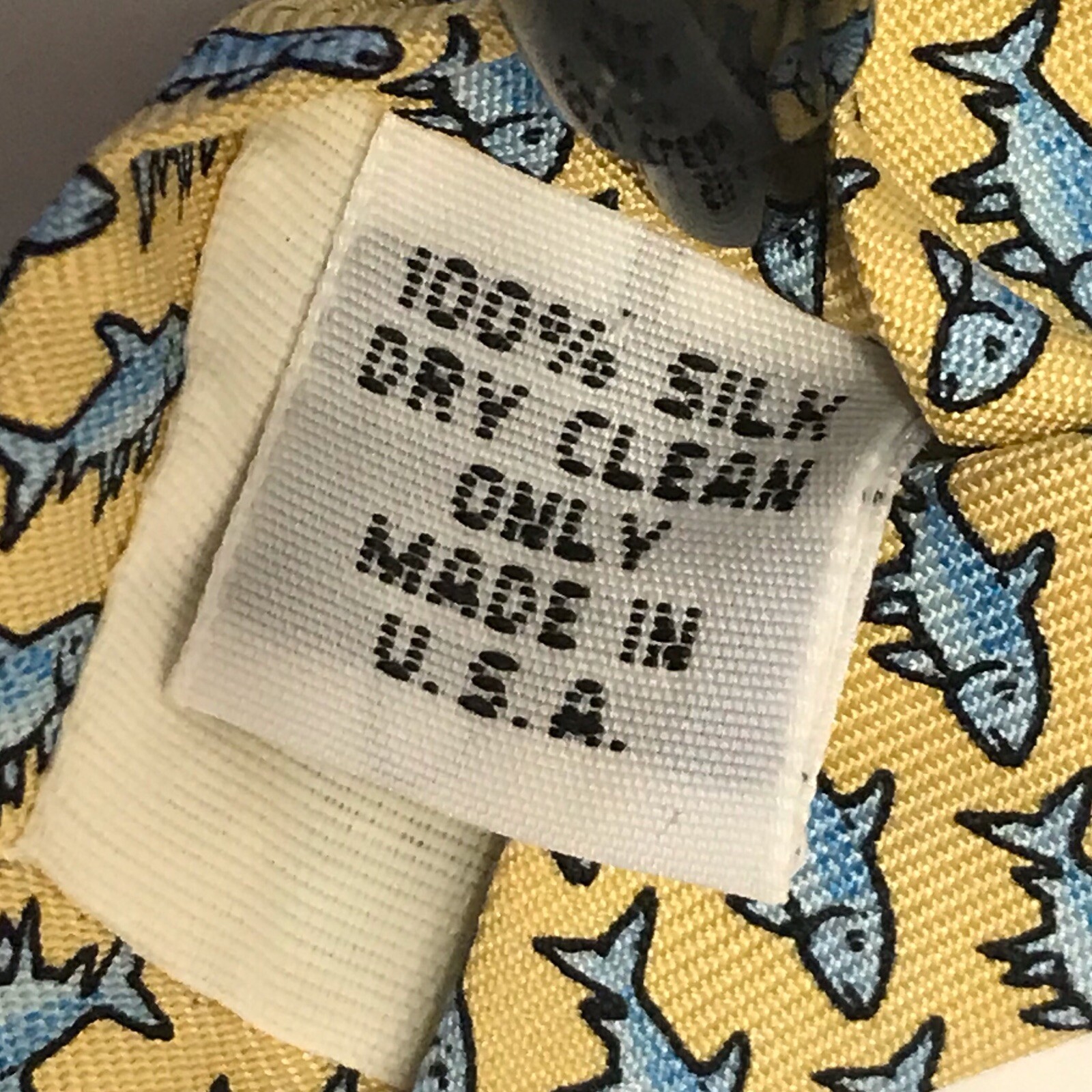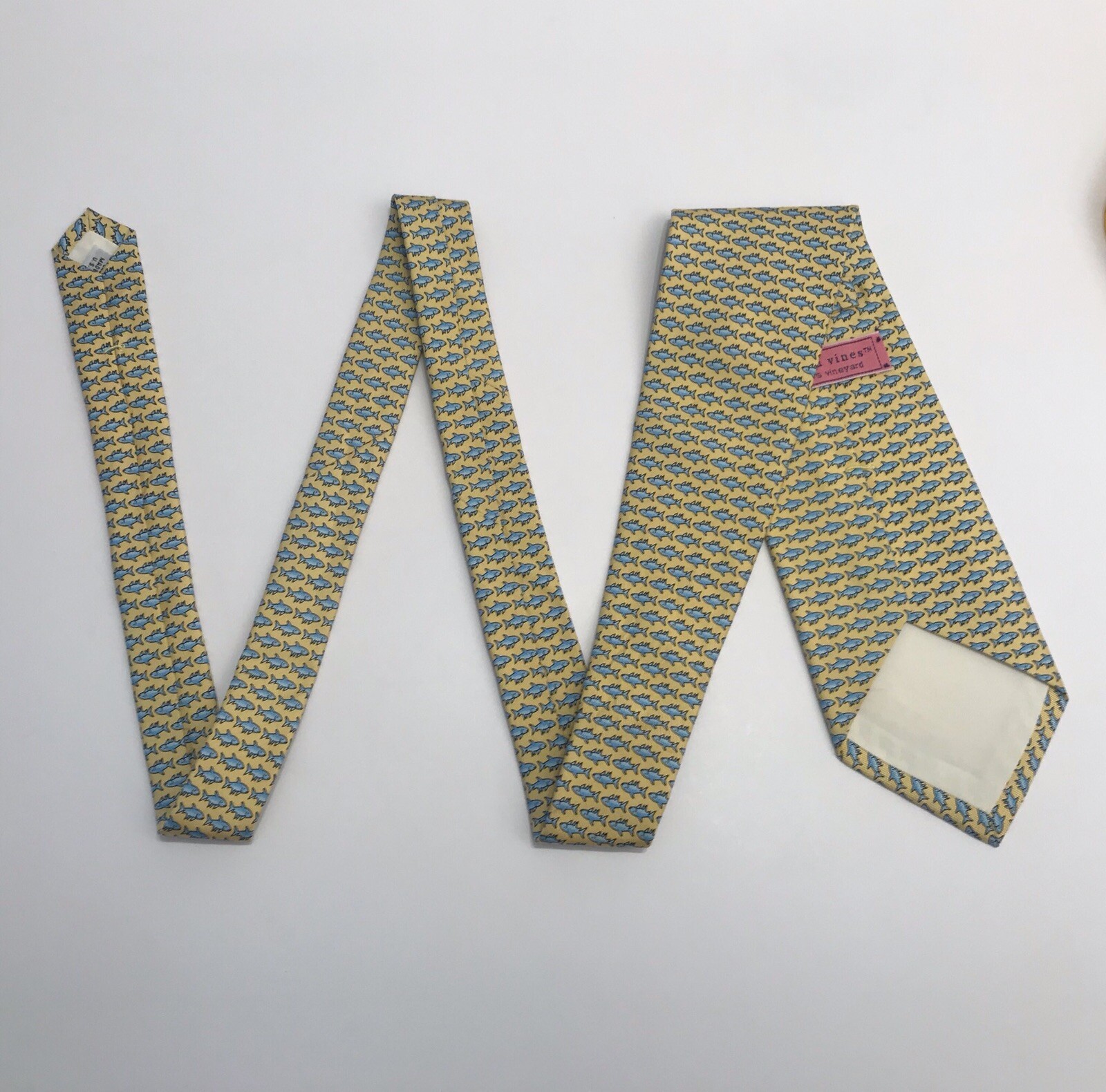 как выглядит VINEYARD VINES Mens Tie Blue Yellow Shark Geo Design 57L 3.75W EUC Retail - 99 фото