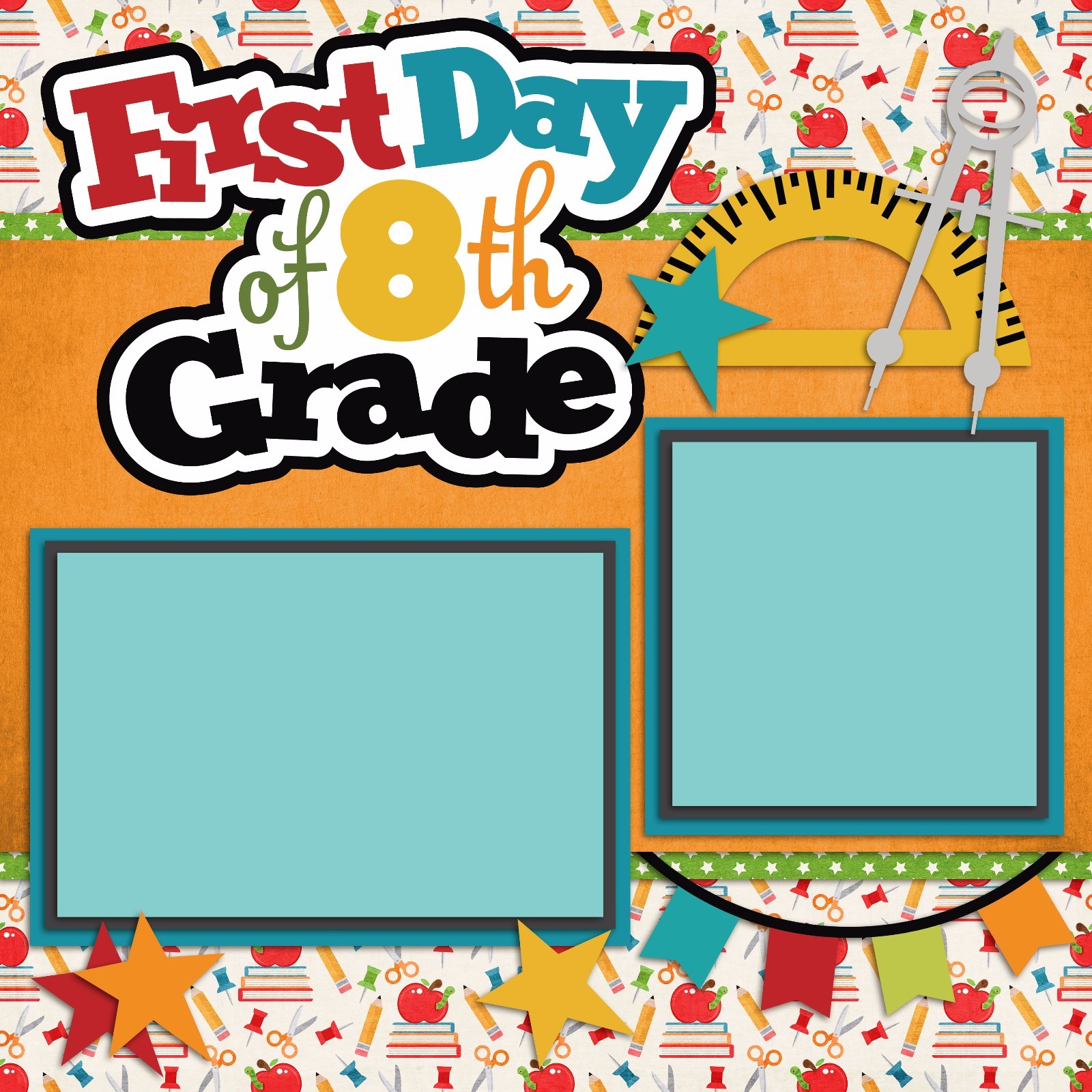 как выглядит First Day of 8th Grade - 2 Premade Scrapbook Pages - EZ Layout 2223 фото