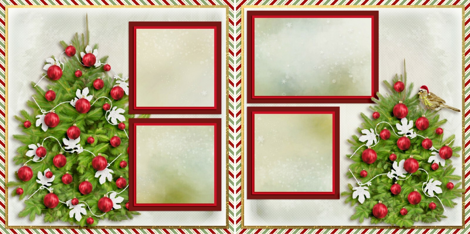 CHRISTMAS BIRDIE - 2 Premade Scrapbook Pages - EZ Layout 4106