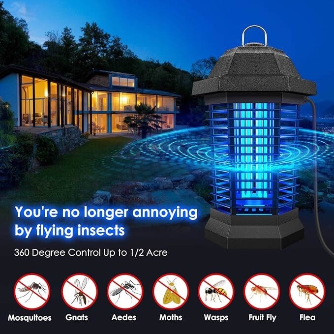 Bug Zapper Large Coverage 1/2 Acre, Smart Light Sensor, Weatherproof, Mosquito