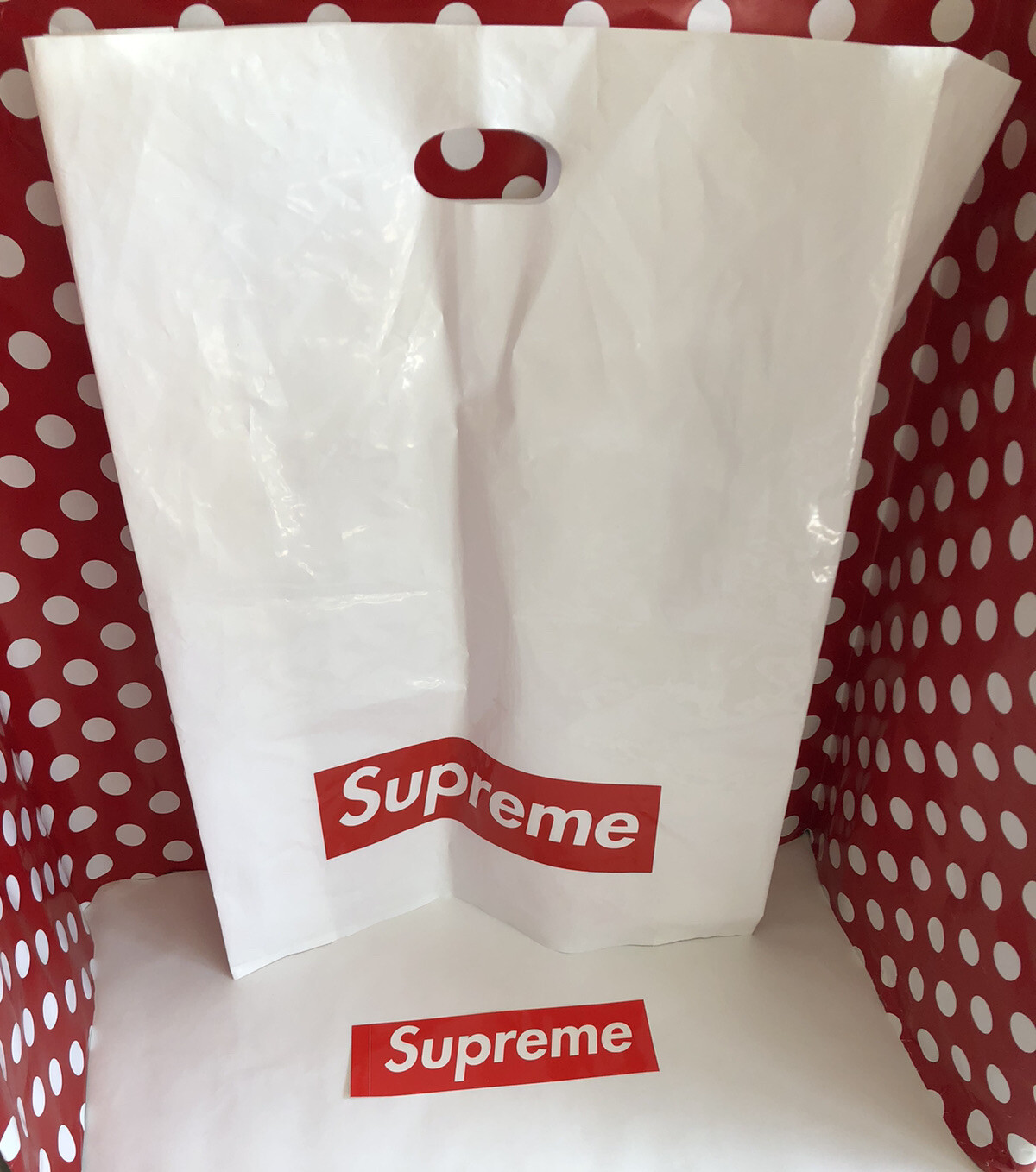 Supreme NY Plastic Tote Bag Red Box Logo LARGE Shopping Bag and Sticker