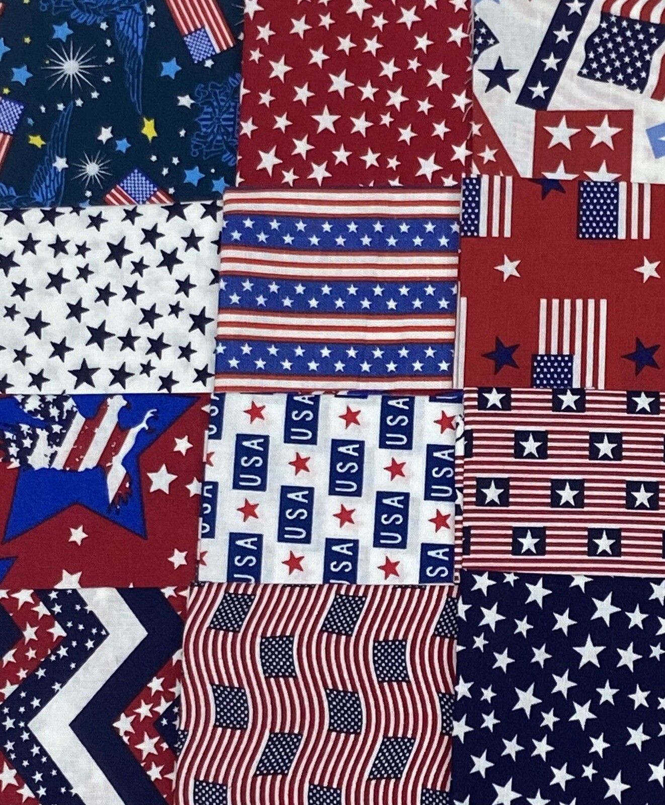 Patriotic USA 11 Print Bundle Stars and Stripes Cotton Quilt Sewing Fabric