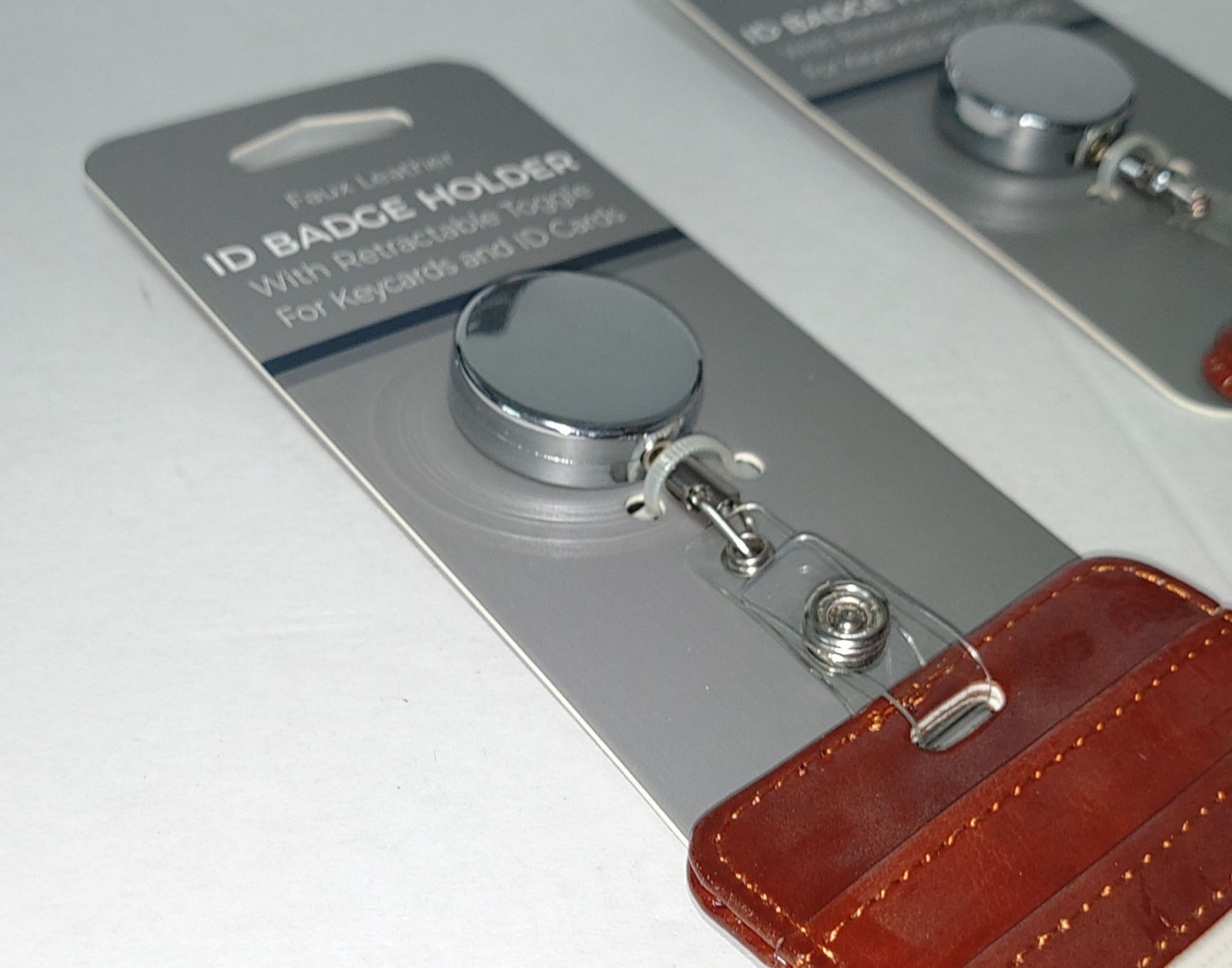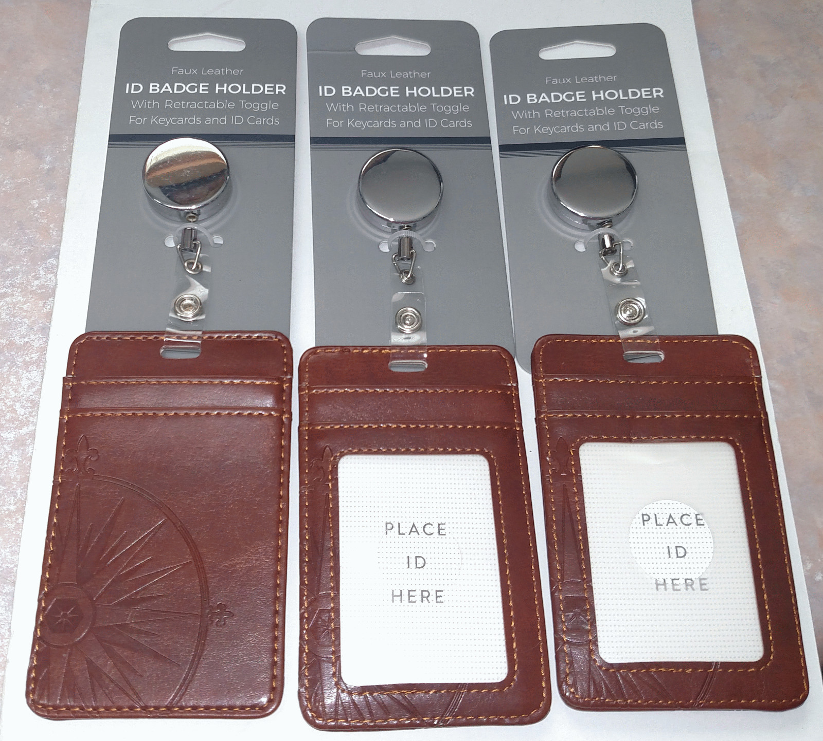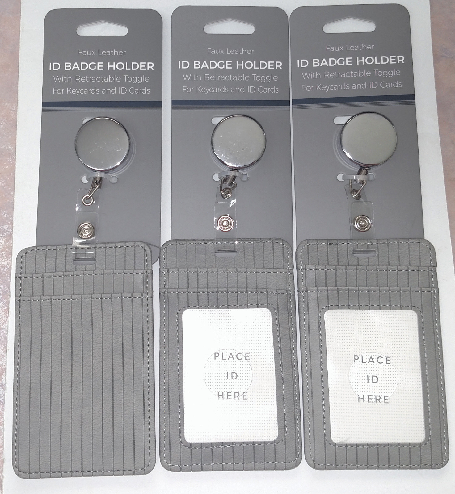 Faux Leather Retractable ID Badge Holders 3 Pack Grey Chocolate Brand New