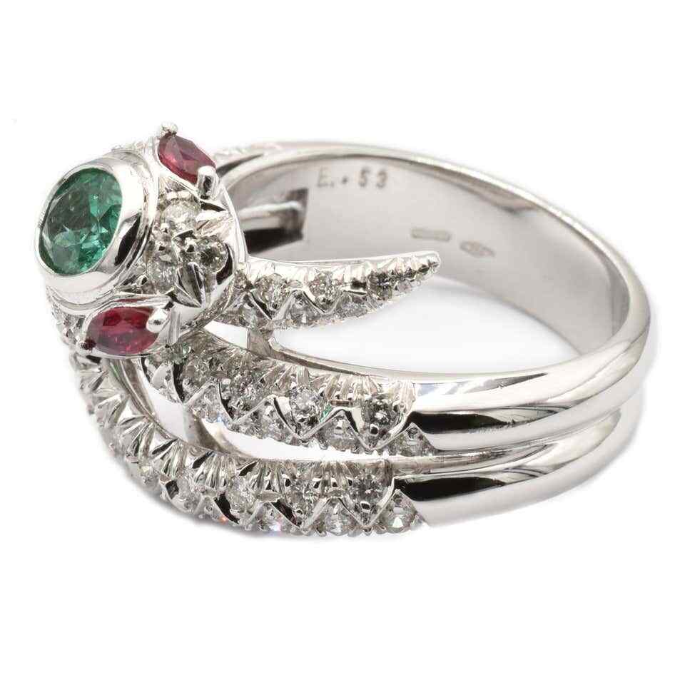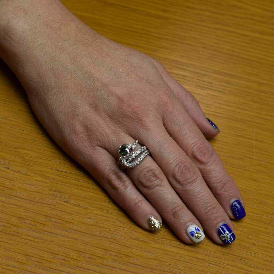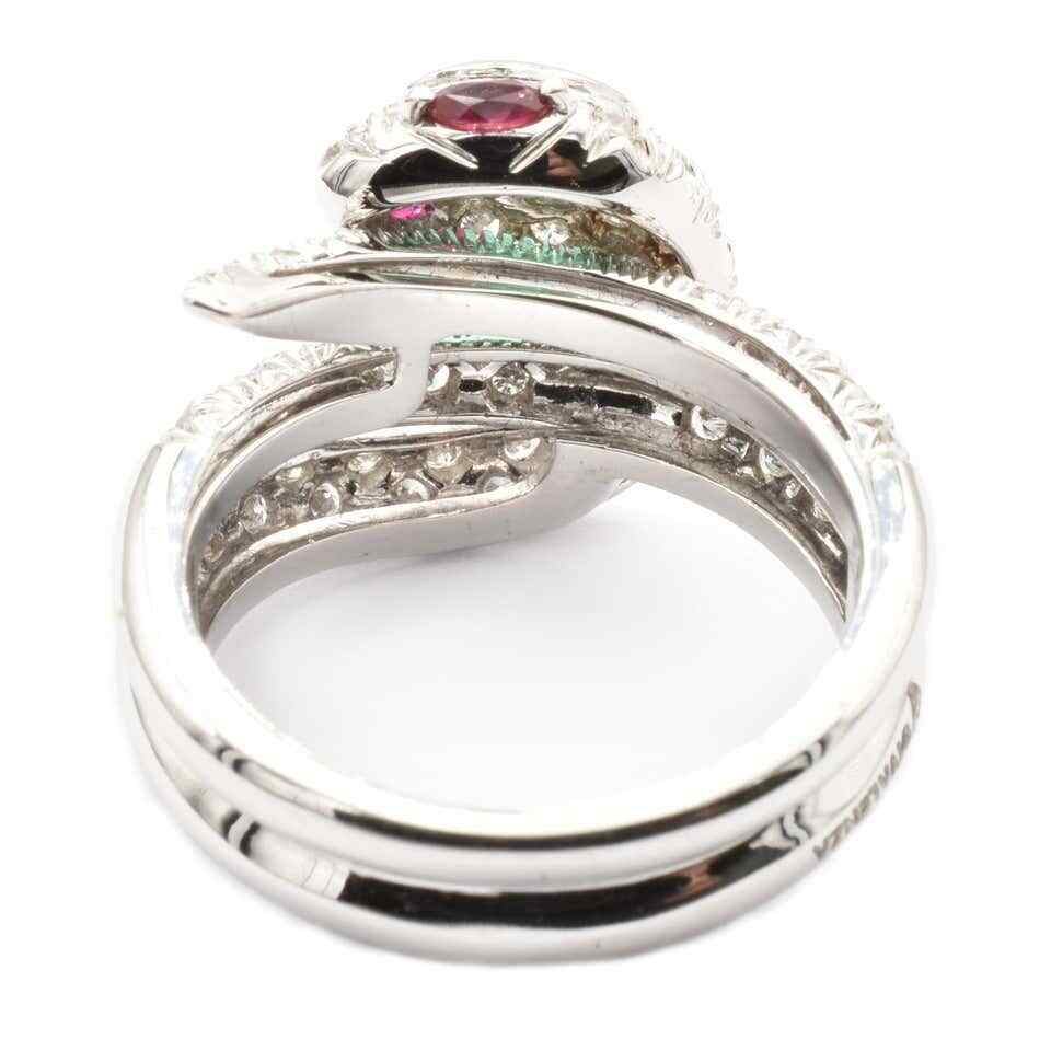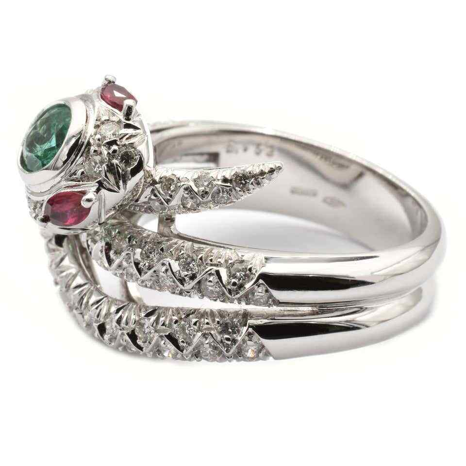 как выглядит 935 Real Silver Snake Ring With A Oval Emerald, Two Marquise Rubies and White CZ фото