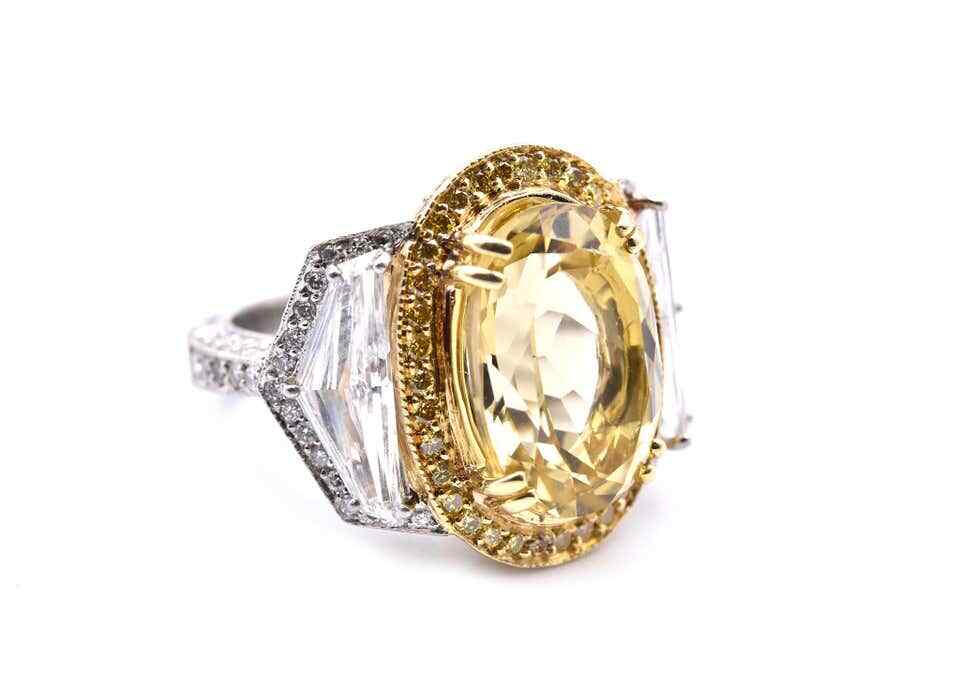 Yellow Transparent Oval Cut Citrine With Fancy Cut Cubic Zirconia 8.76TCW Ring