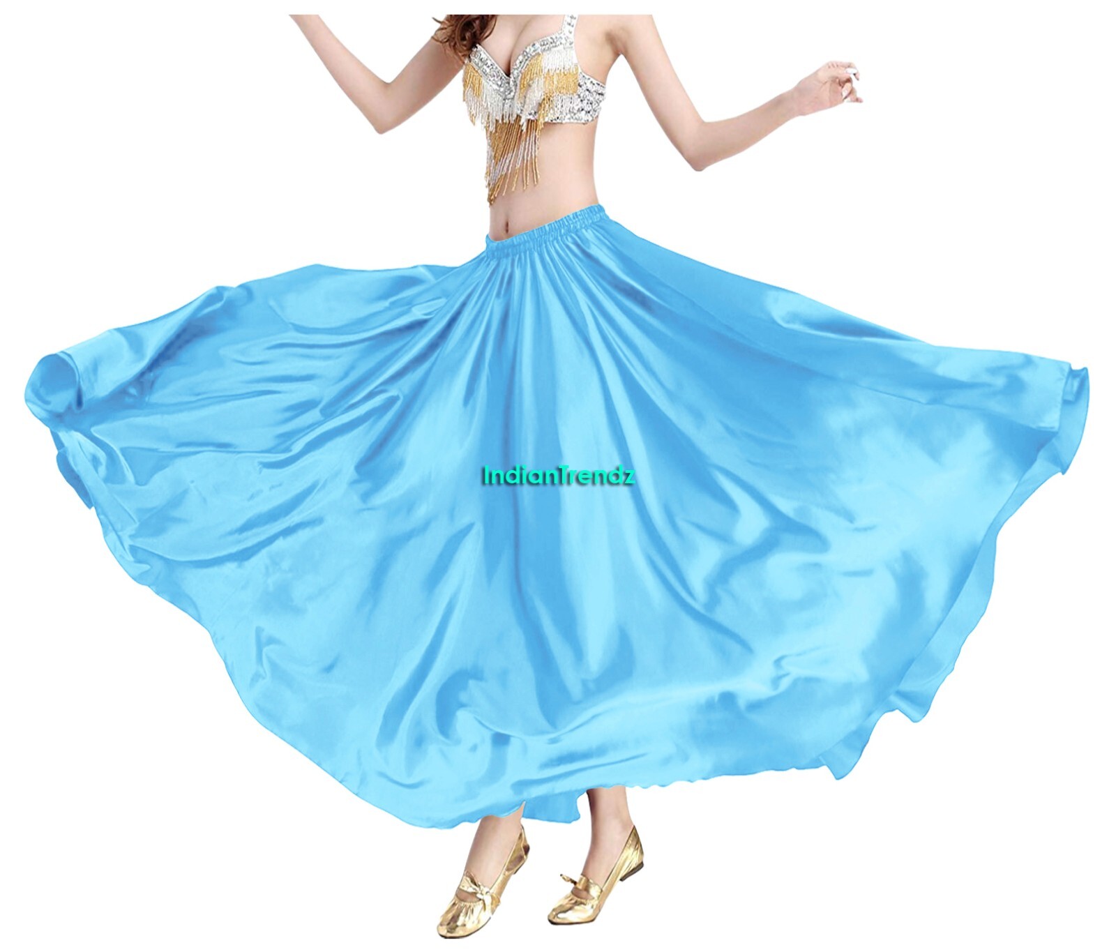 360 Full Circle Satin Long Skirt Swing Belly Dance Costumes Tribal 9 Yard Gypsy