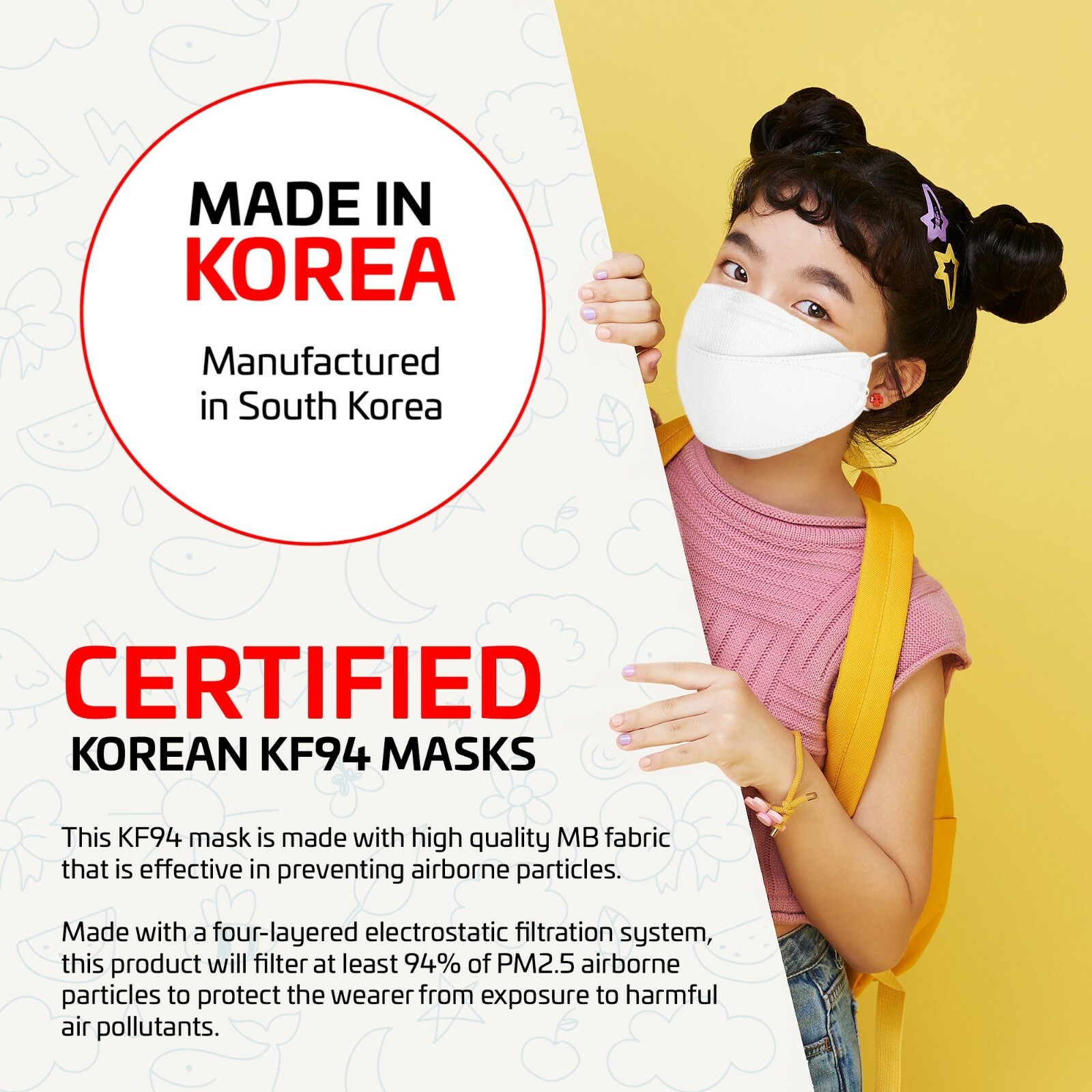 Intended Use/Discipline: Korean Filter, 4-ply, 4 LAYERS, Meltblown, Child, School Kids, Children, Anti-skin irritation compliant test passed, Elementary School