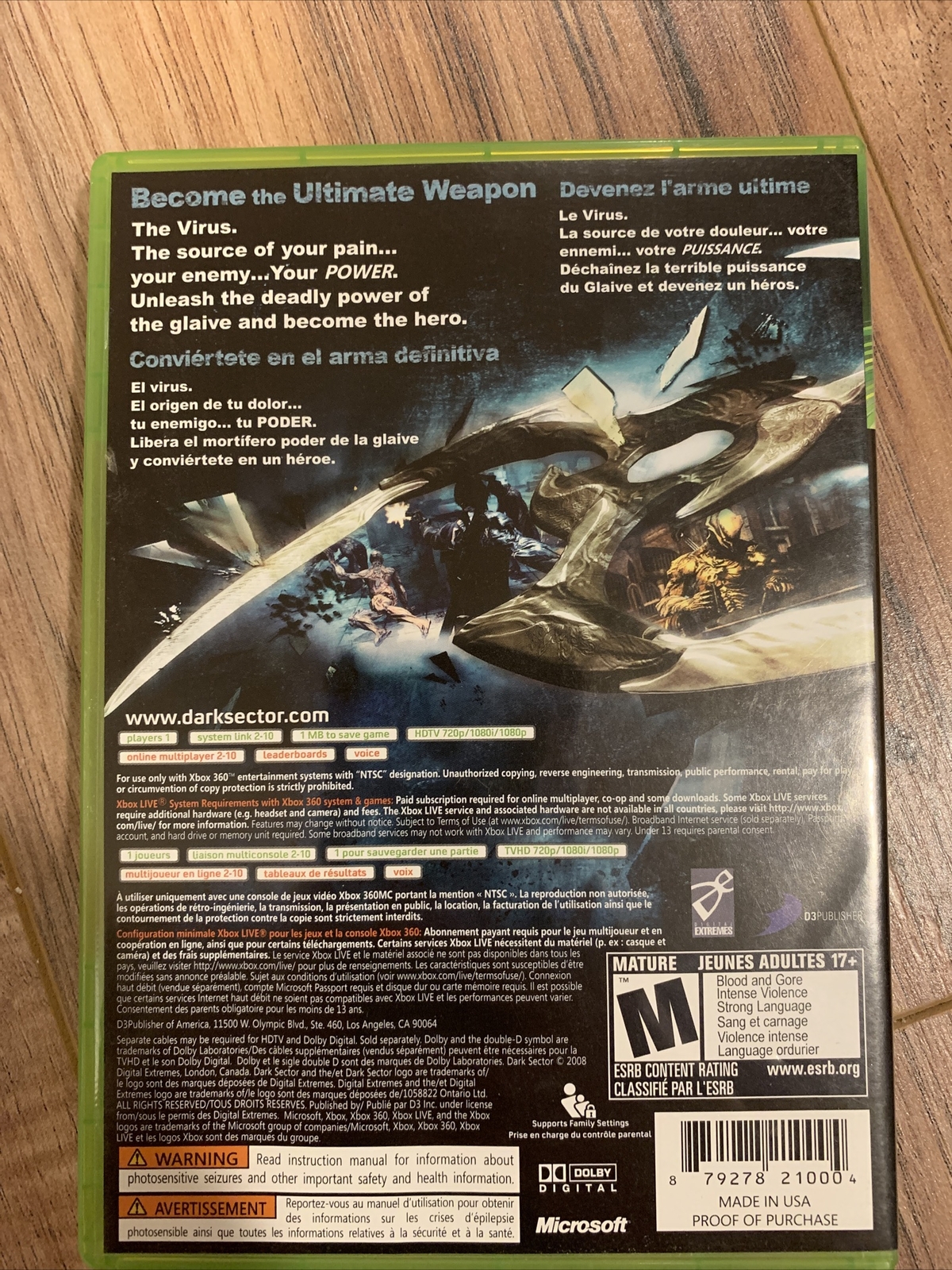 Dark Sector Microsoft XBOX 360 - Complete with Manual