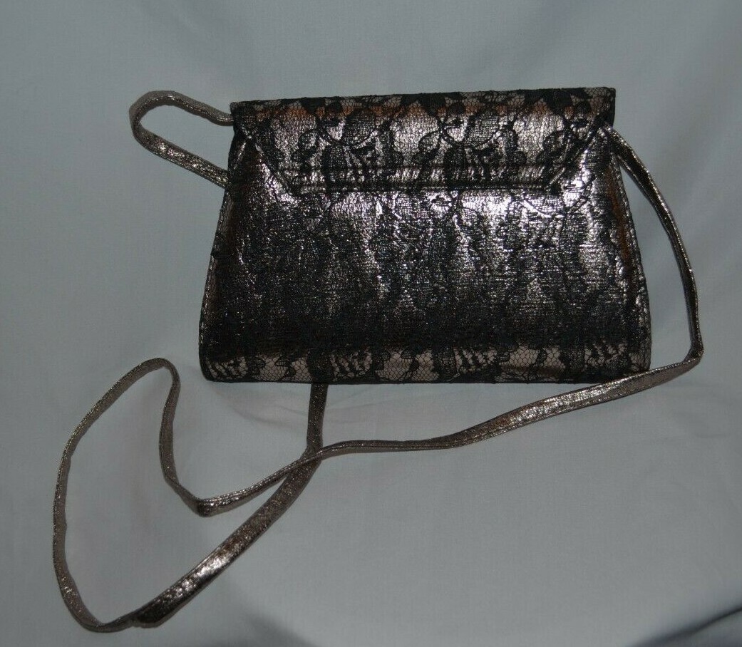 как выглядит Neiman Marcus Vintage 1980s Metallic Black Lace Evening Purse Handbag фото