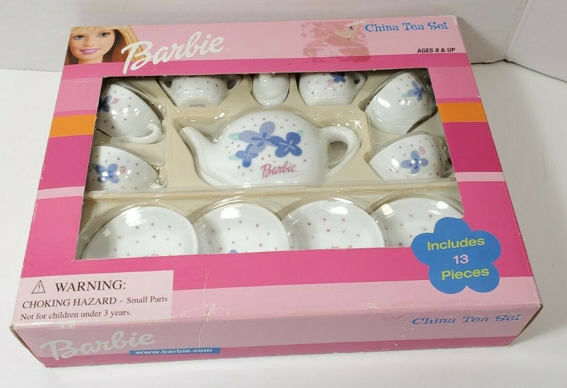 • NEW 2001 Barbie China Tea Set 13 Pieces Schylling Flower Design