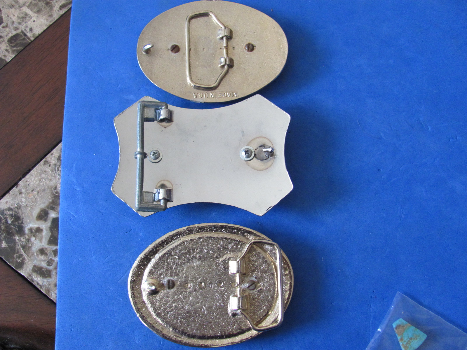 3 BELT BUCKLES SILVER and gold COLOR WITH STONES VINTAGE