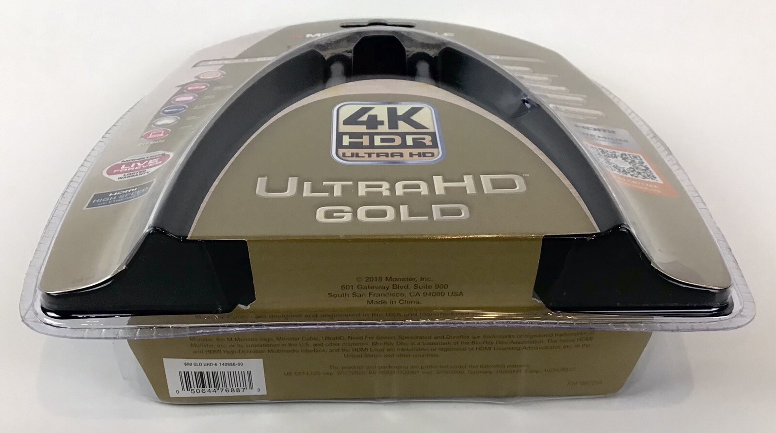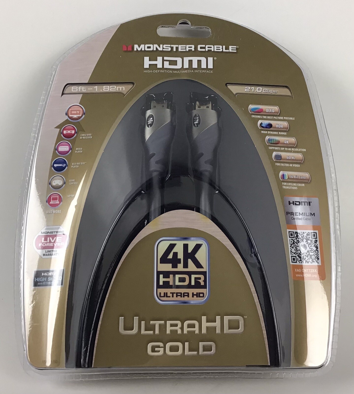 Monster Cable HDMI 4K HDR Ultra HD Gold 60Hz 21 Gb Ethernet 6' Premium Brand New