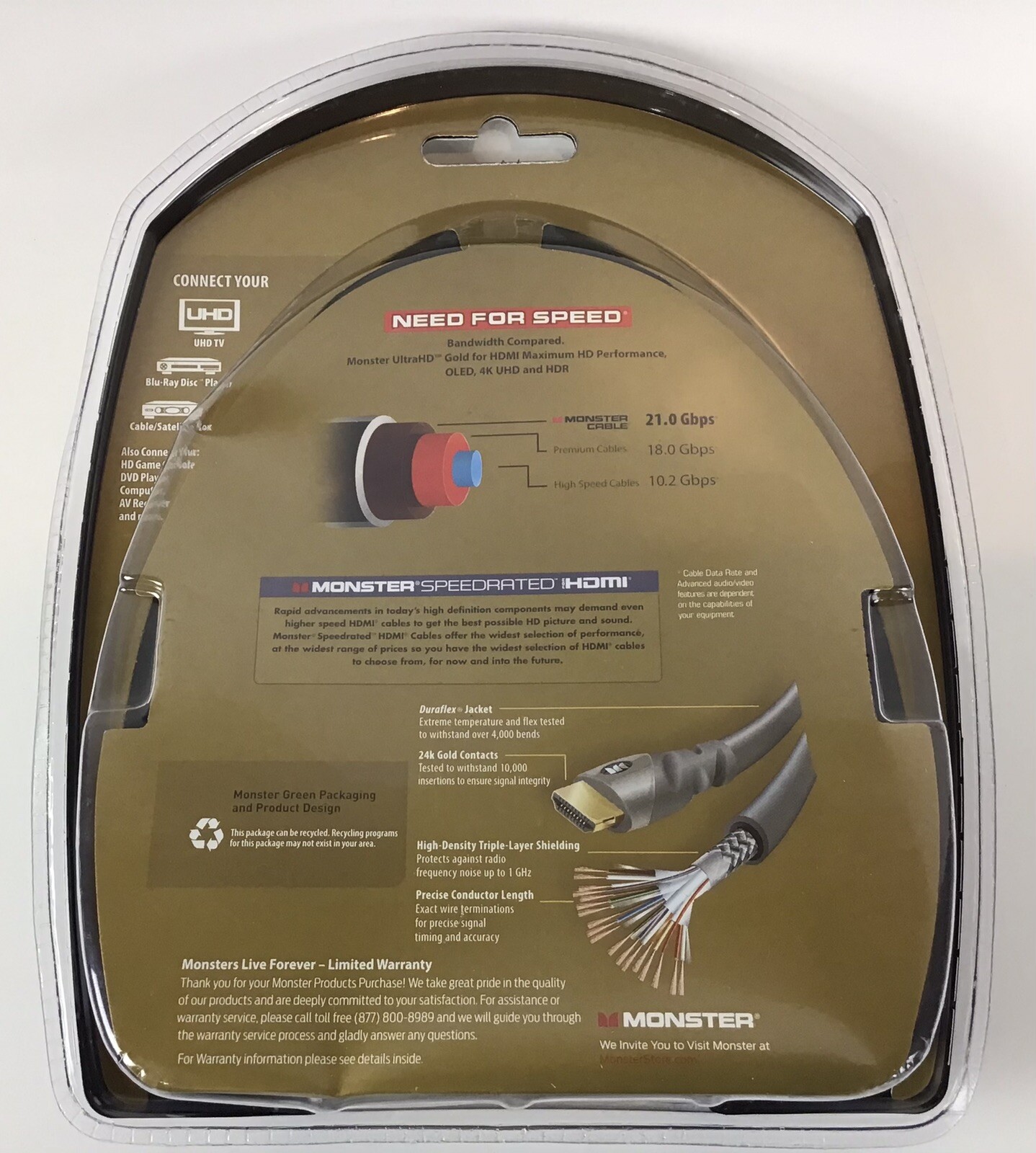 как выглядит Monster Cable HDMI 4K HDR Ultra HD Gold 60Hz 21 Gb Ethernet 6 Premium Brand New фото