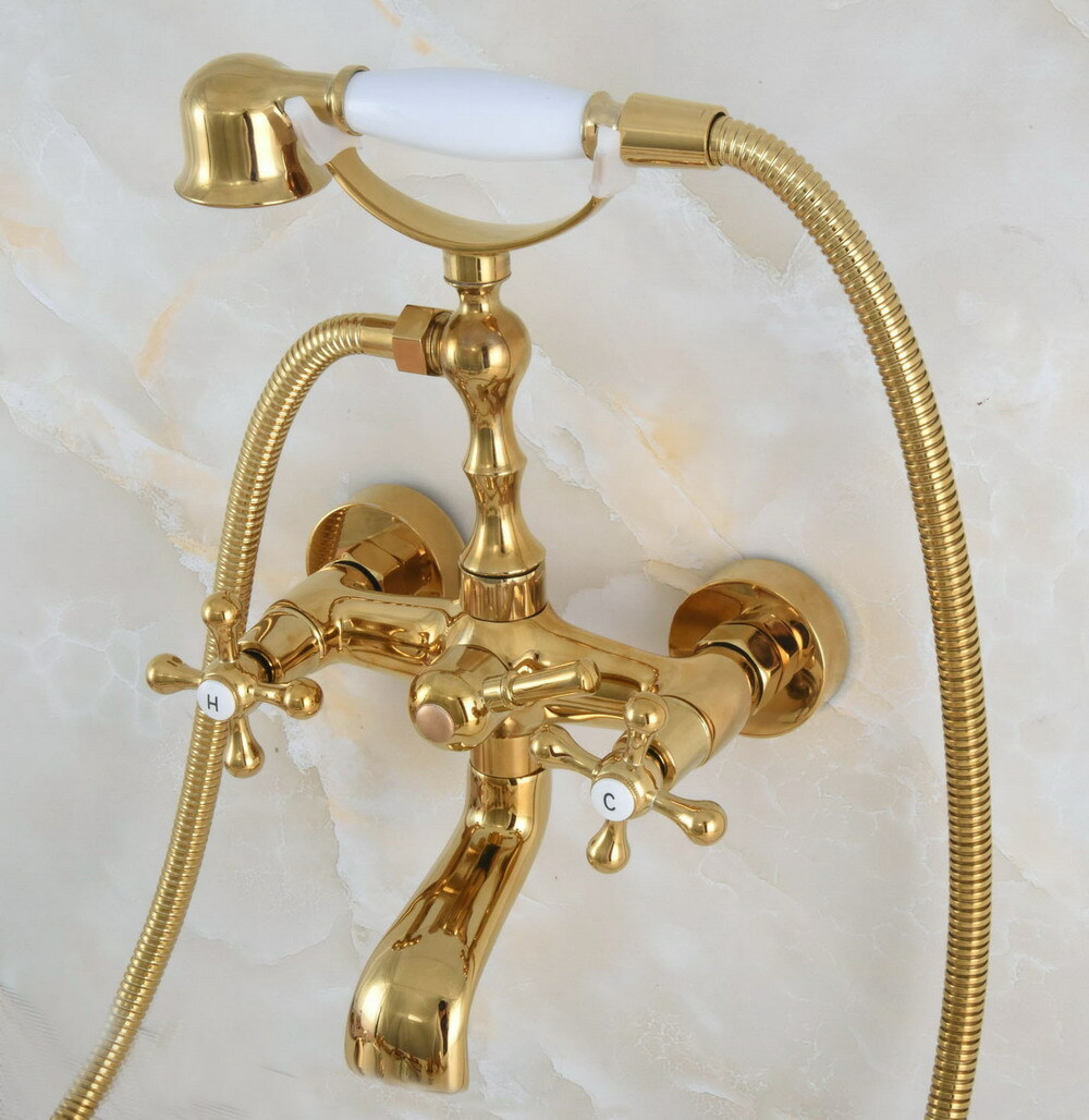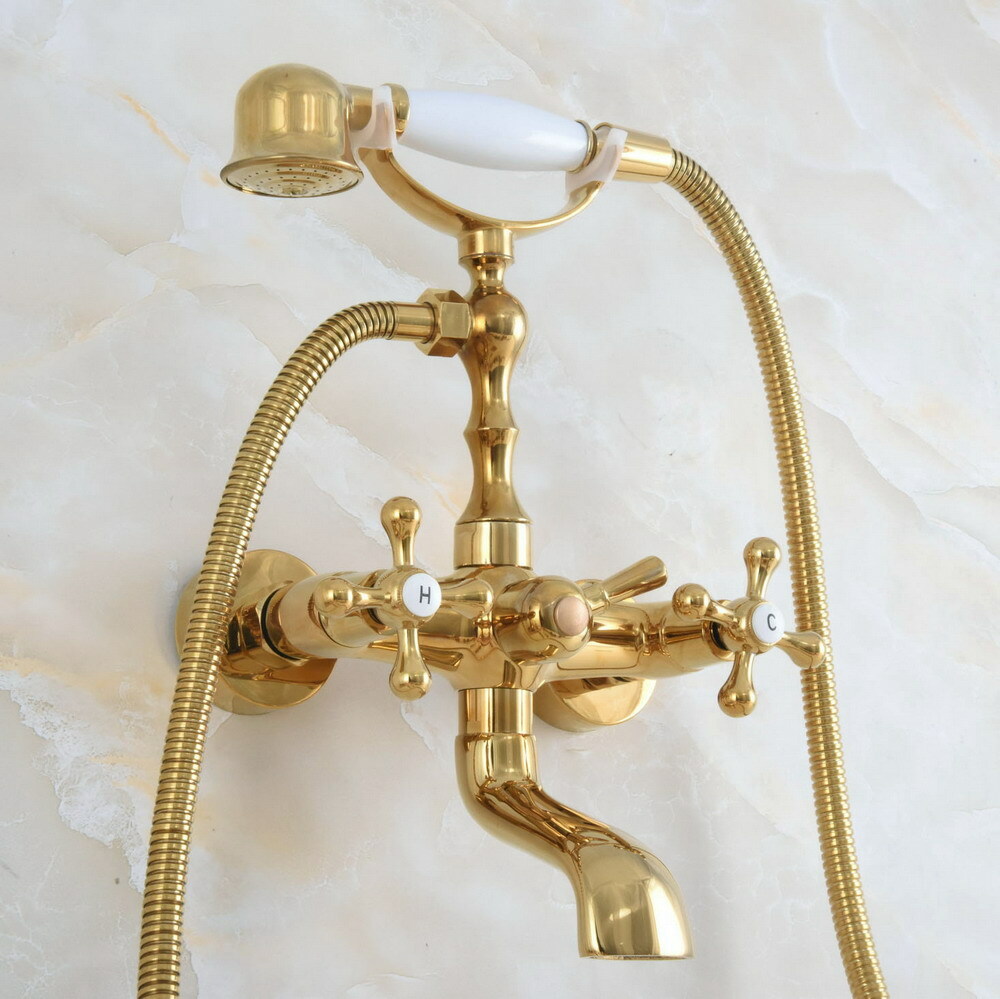 Luxury Gold Brass Clawfoot Bath Tub Faucet with Hand Shower Mixer Tap Wall Mount