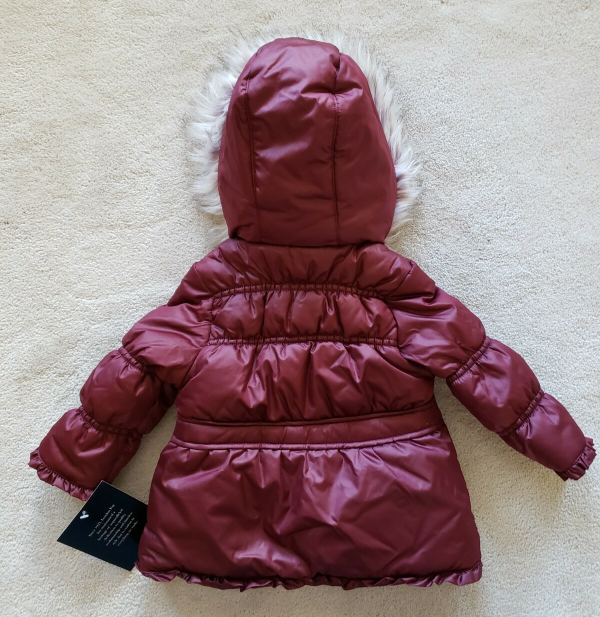 NWT Infant Girls LONDON FOG Burgandy Faux Fur Hood Coat Size 12 Months