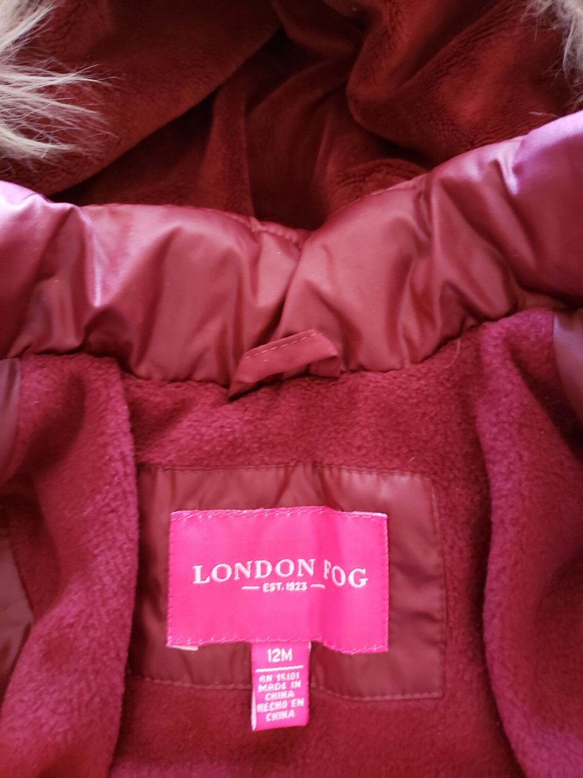 как выглядит NWT Infant Girls LONDON FOG Burgandy Faux Fur Hood Coat Size 12 Months фото