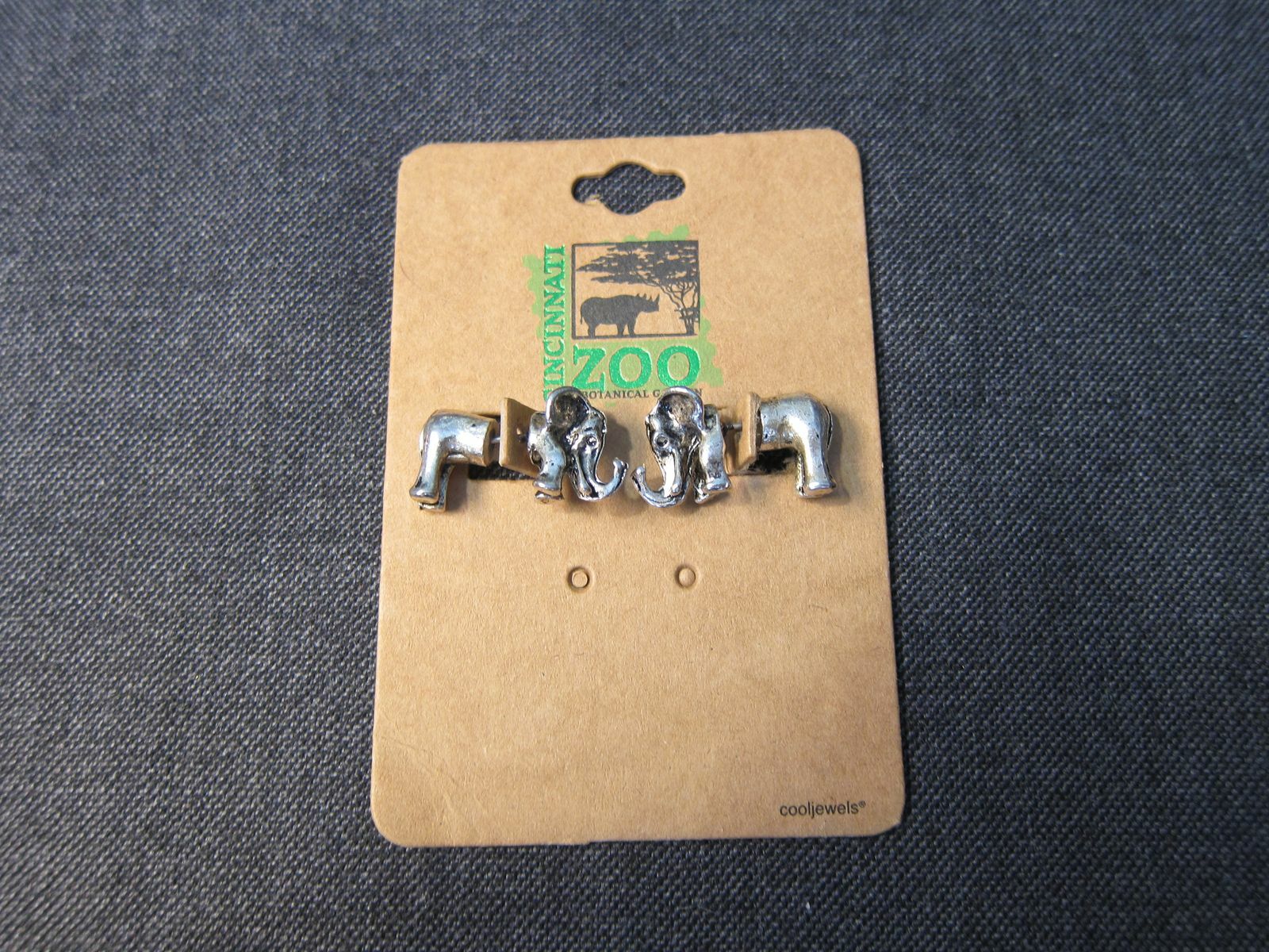 Cute elephant ear jacket earrings front back of ear from Cincinnati Zoo