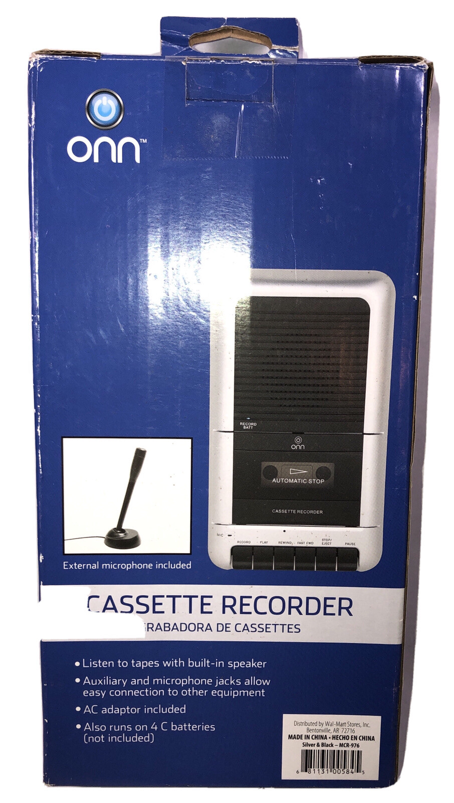 Onn Cassette Recorder In Box Tested Works No Power Cord No Batteries Preowned
