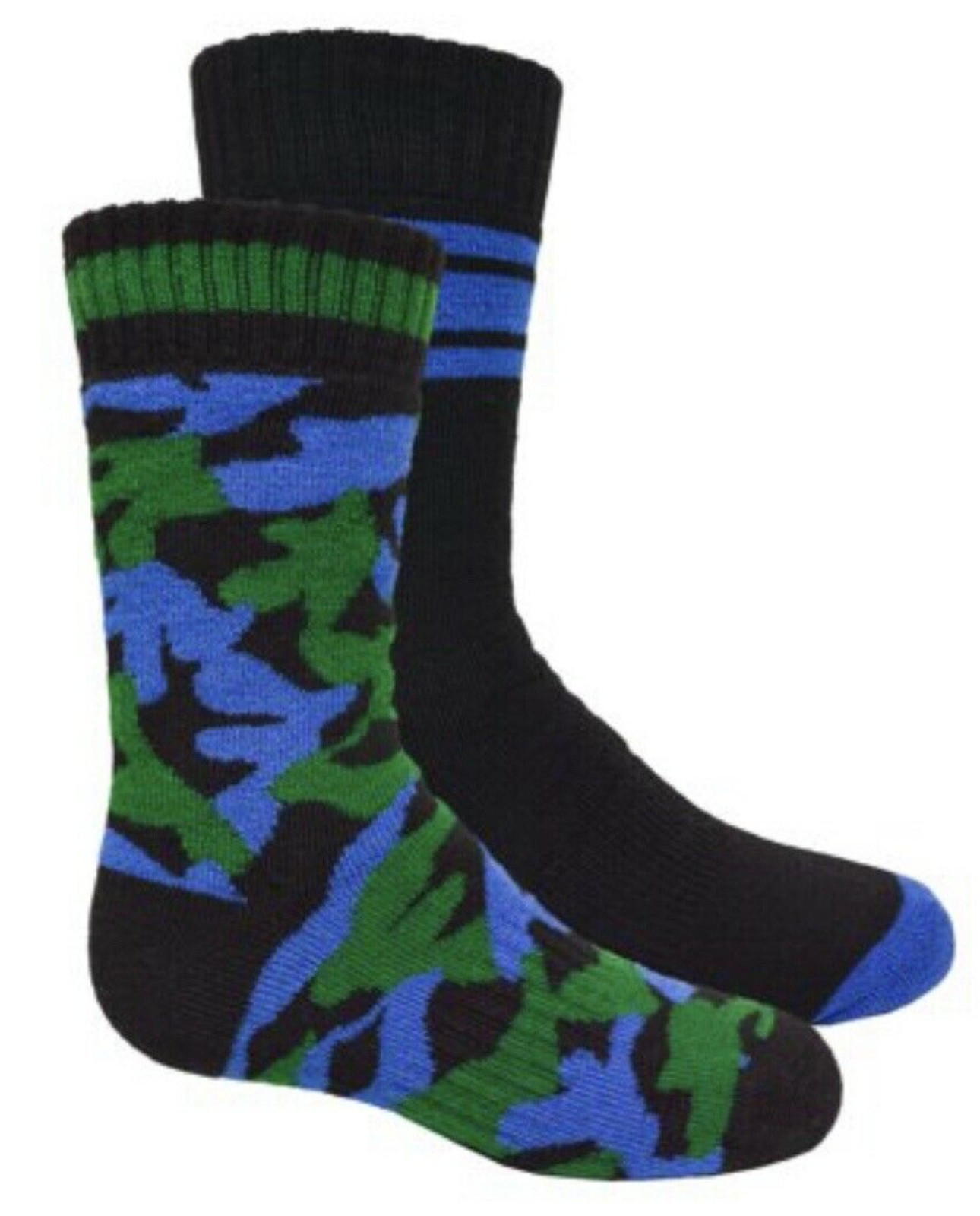 Boys Thermal Socks Kodiak Size Medium 10-2.5 Set of 2 Blue Camo Red Squares