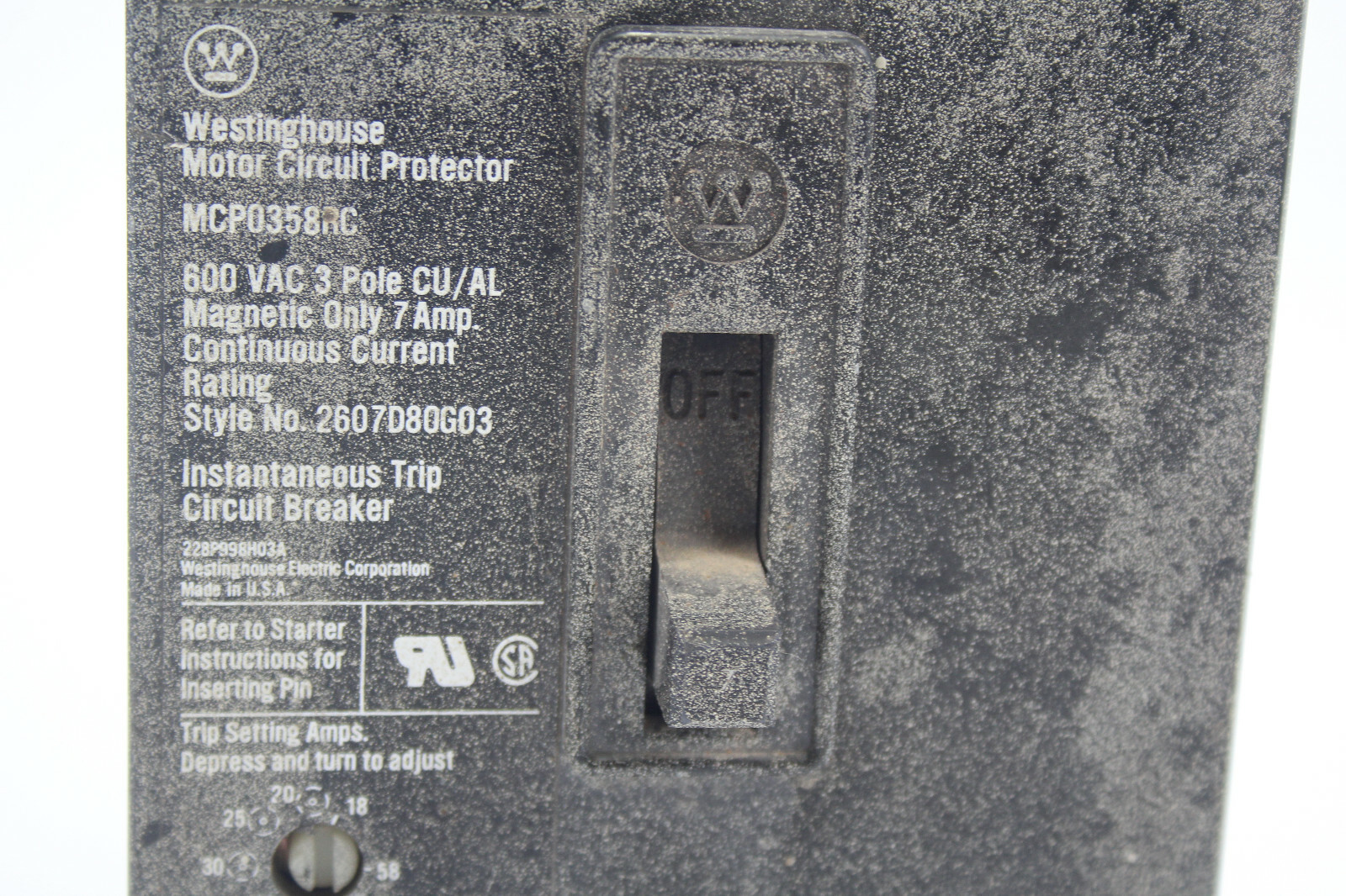 Westinghouse MCP0358RC Circuit Breaker 3-Pole 600VAC 7A Used
