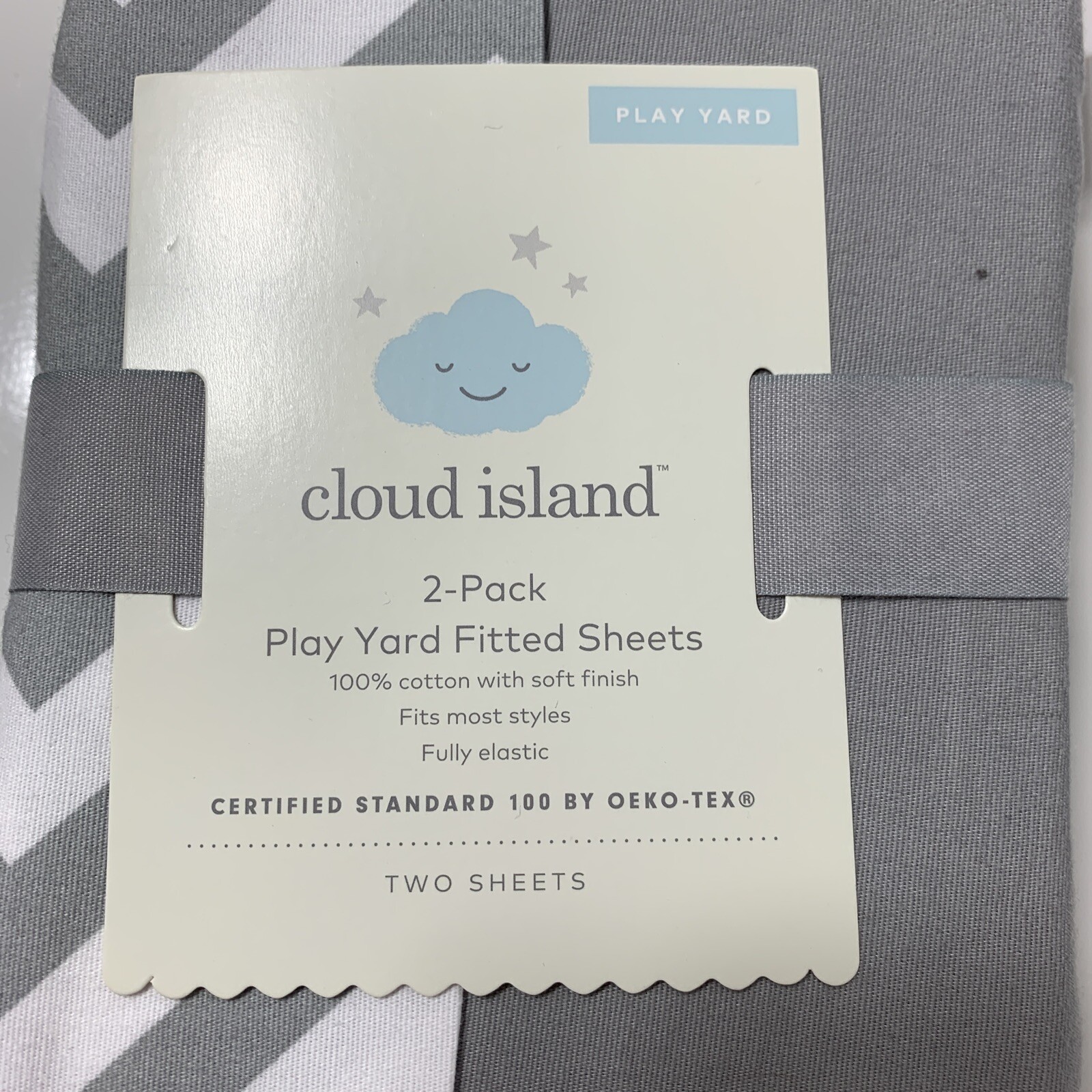New Cloud Island 2 Pack Play Yard Fitted Sheets Cotton Oeko-Tex Chevron Gray