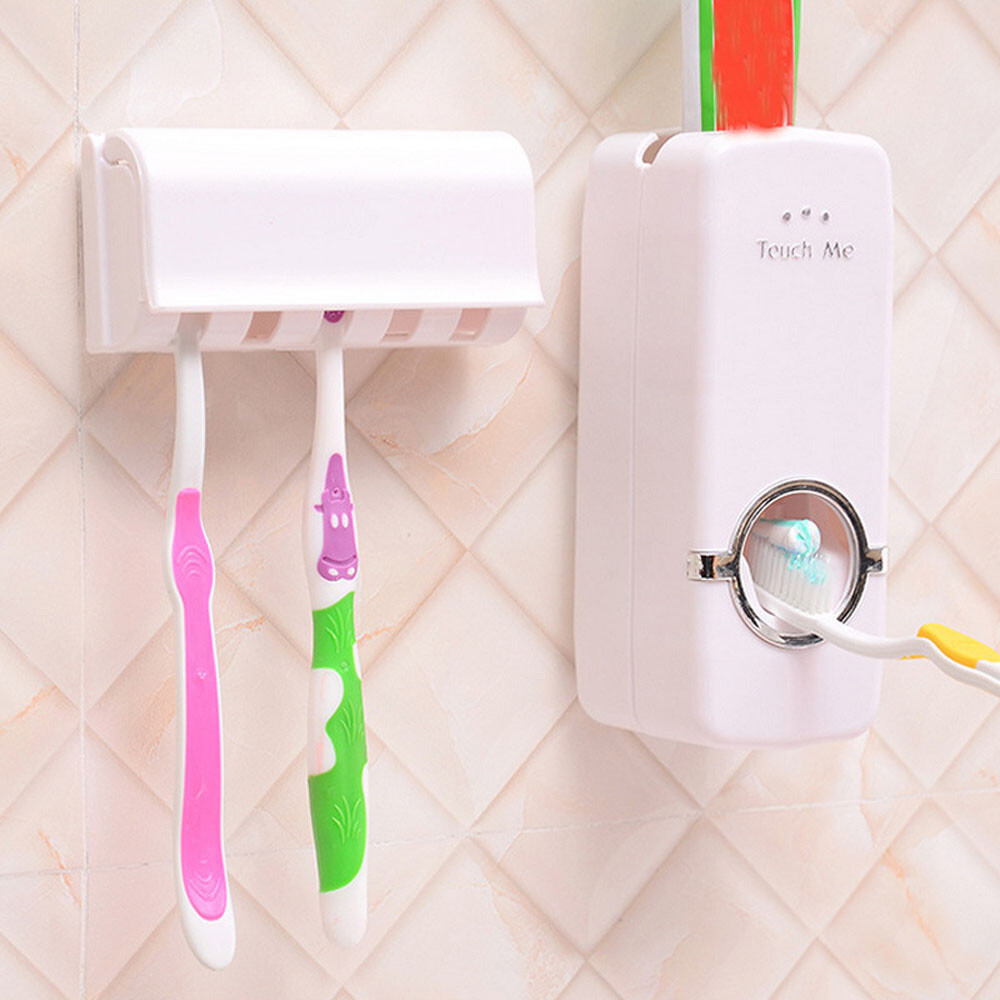 Automatic Toothpaste Dispenser 5 Toothbrushes Holder Set Wall Mount Stand USA.