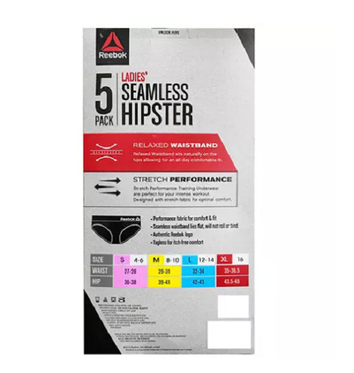 как выглядит NEW Reebok Ladies 5-pack Seamless Hipster Stretch Performance Size XL фото