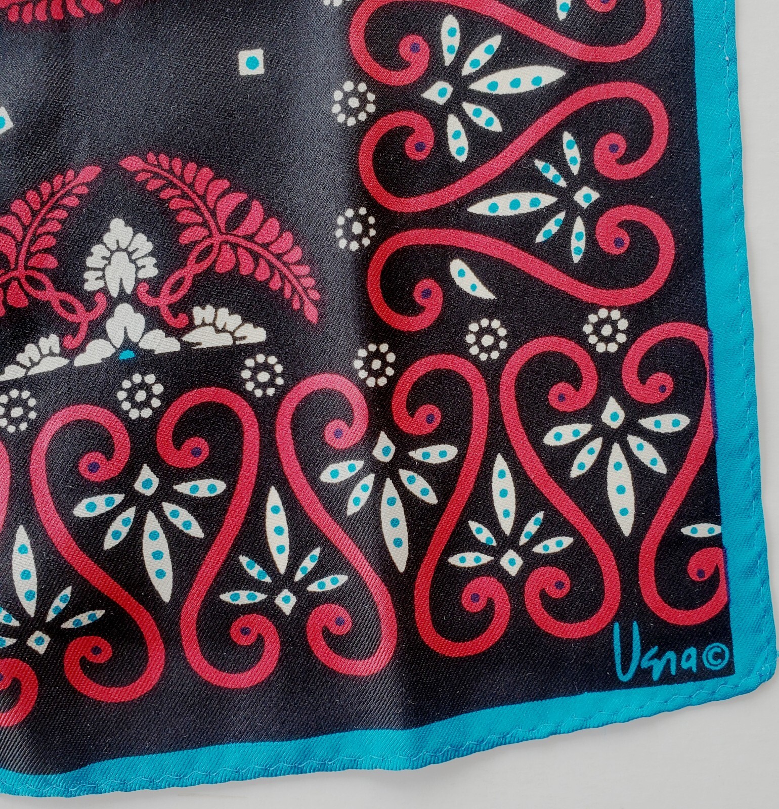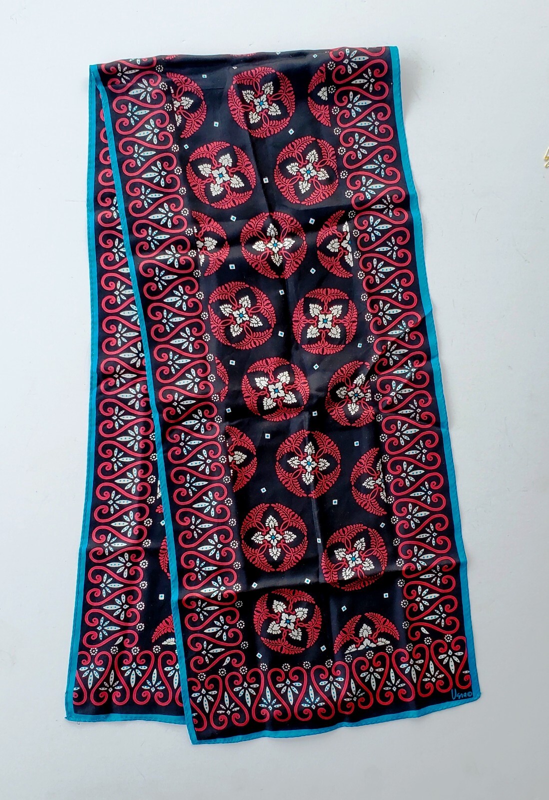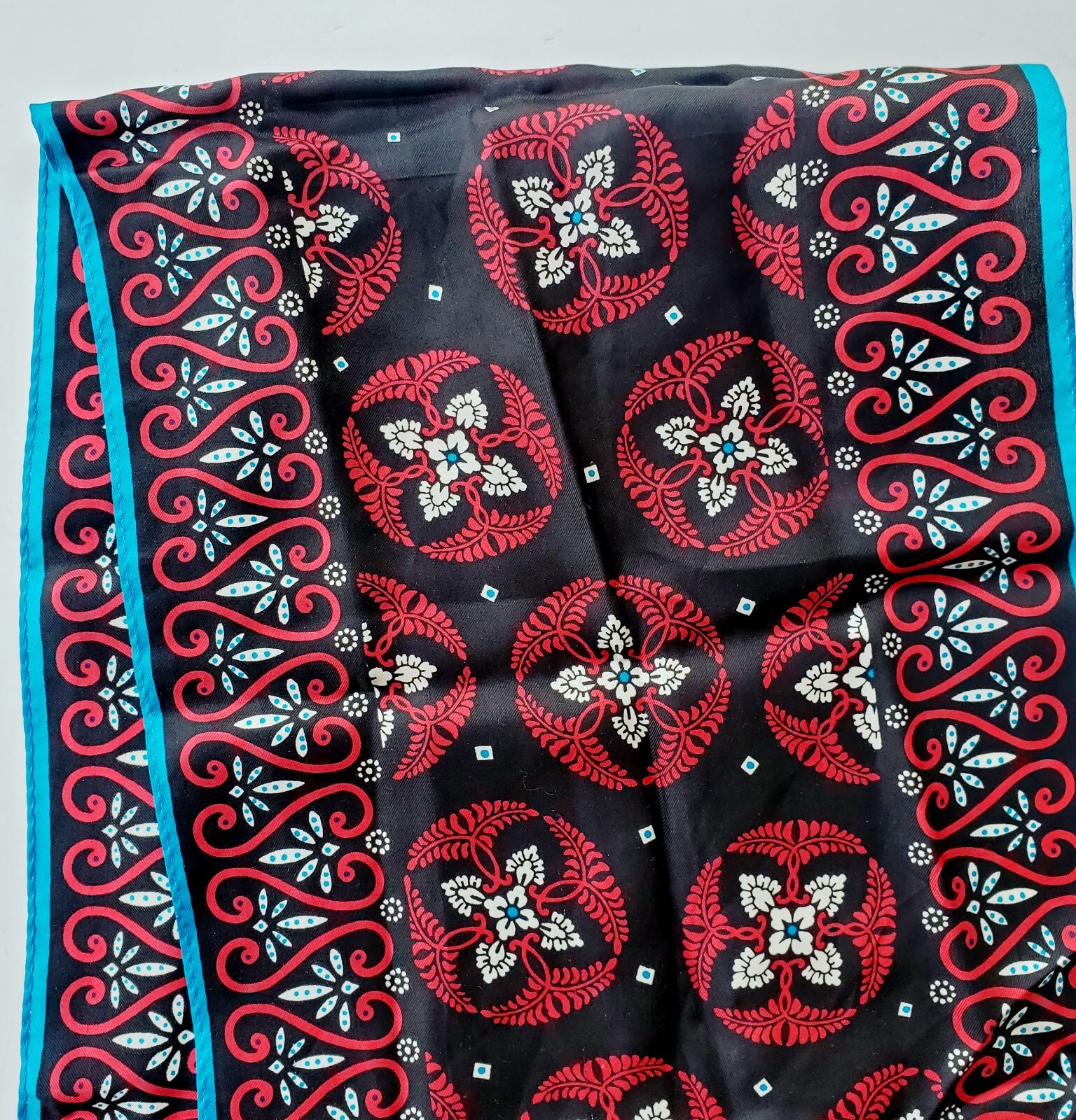Vintage Vera Neumann Neck Scarf Black and Red Mod Floral