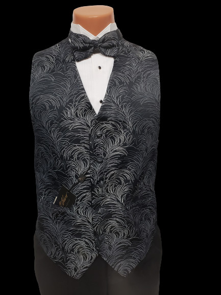 New Tuxedo Vest Bill Blass Retail stock Black Silver Fireworks 89.95 TUXXMAN