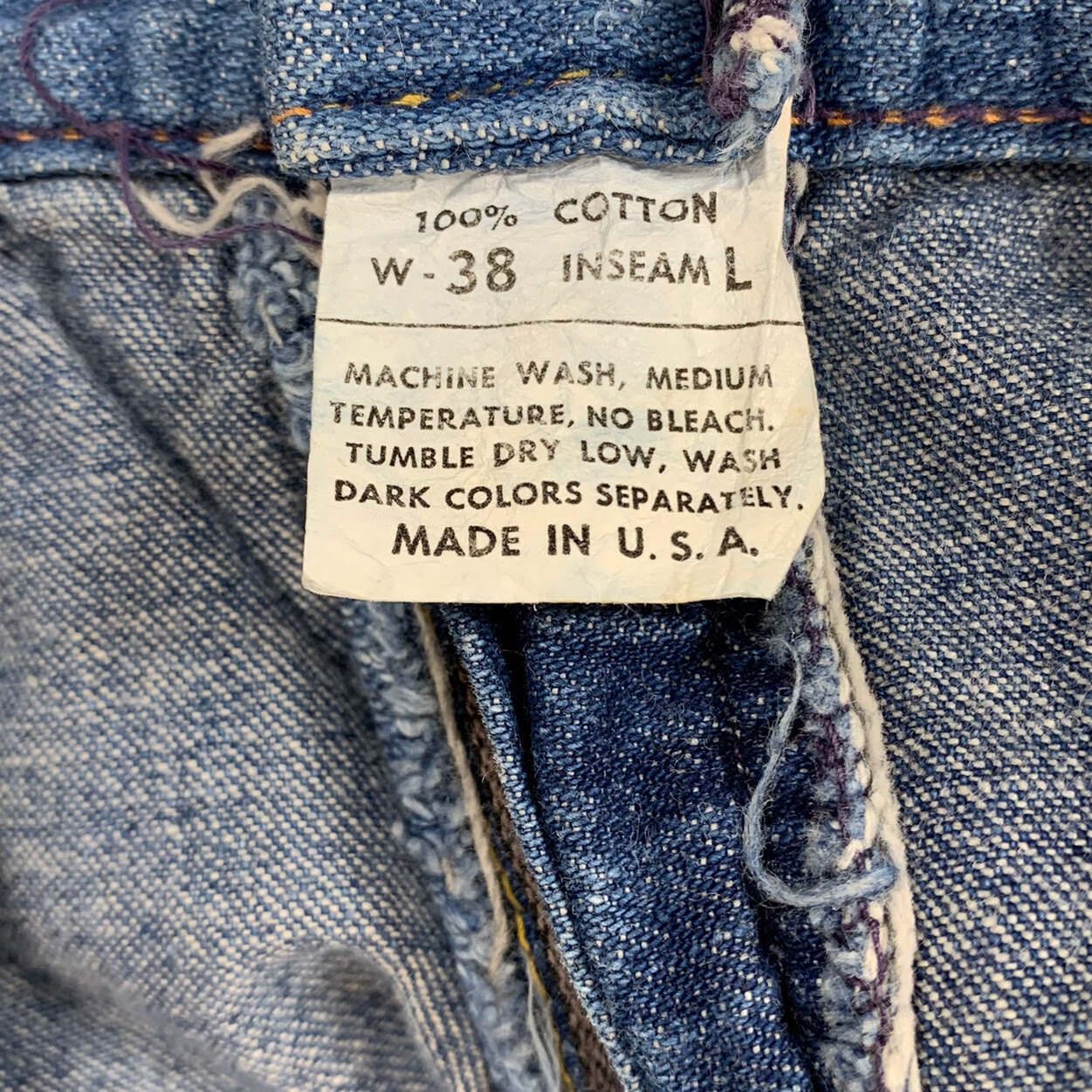 VTG Original 70s Bell Bottom Color Block Jeans Unisex Sz 34x32 Hippie Boho