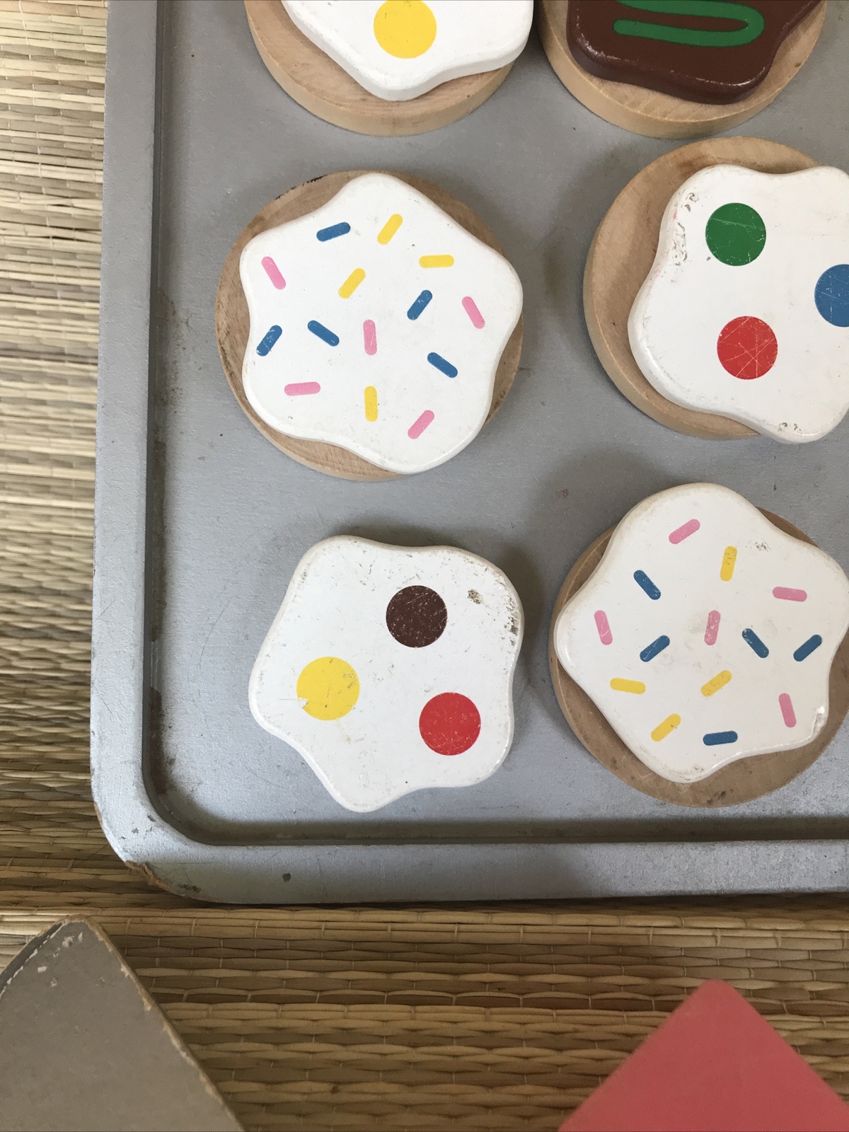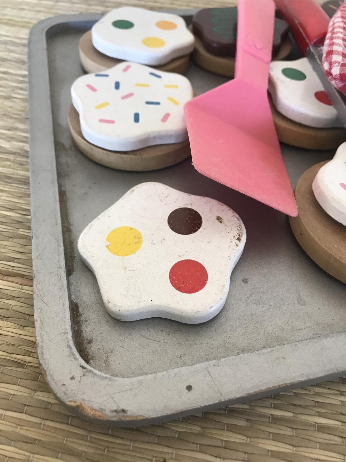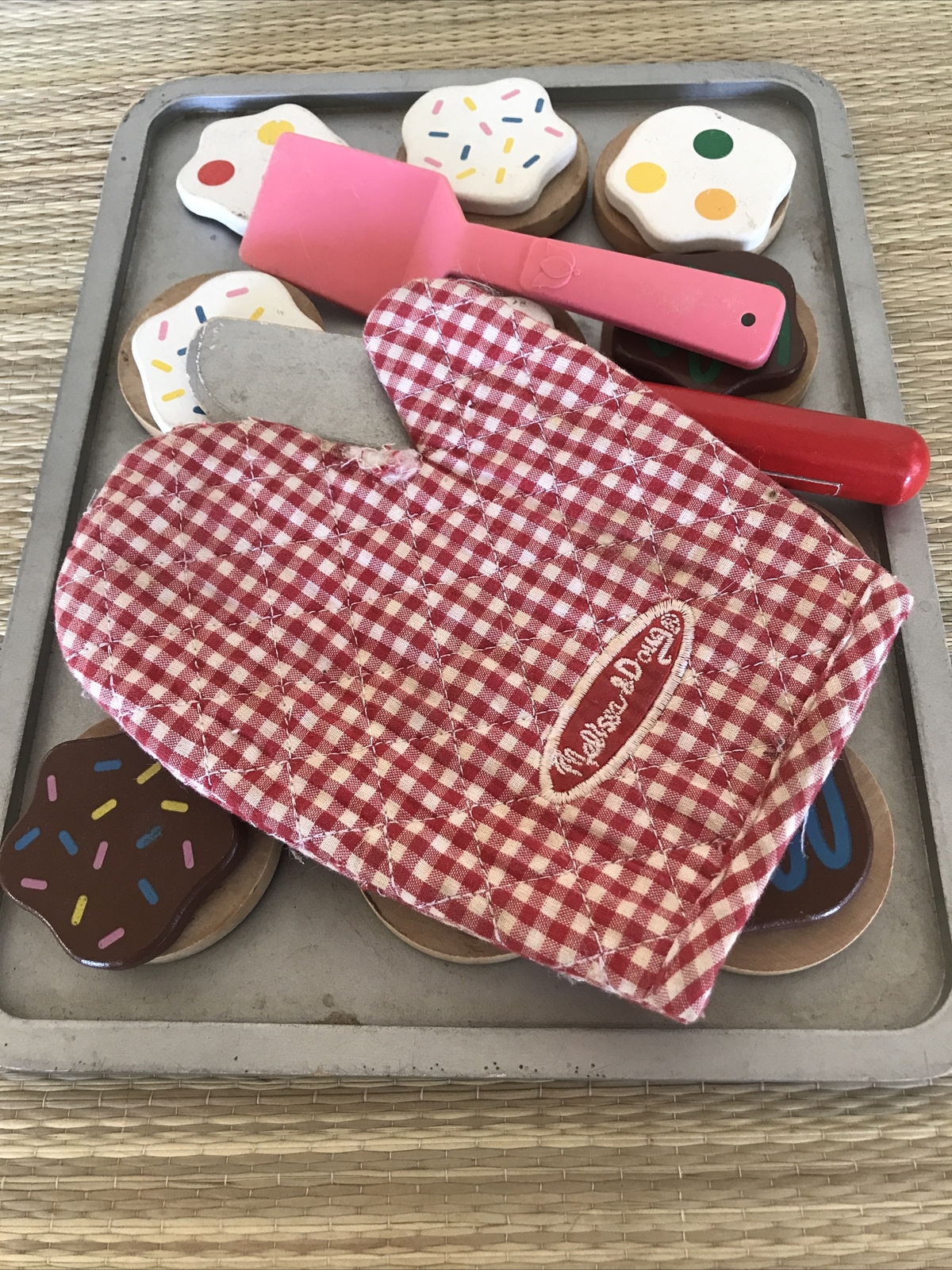 Melissa Doug Slice and Bake Frosted Cookies Wooden Play Set Dozen Pan Mit