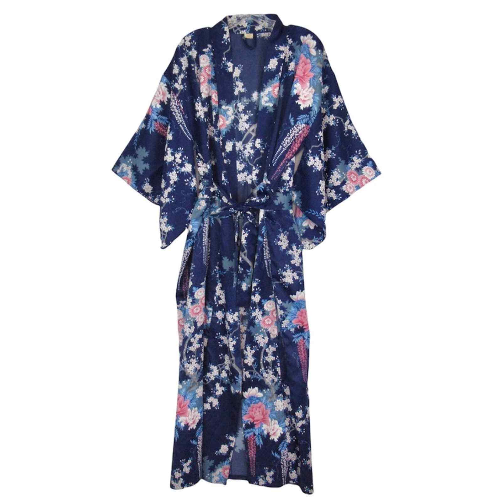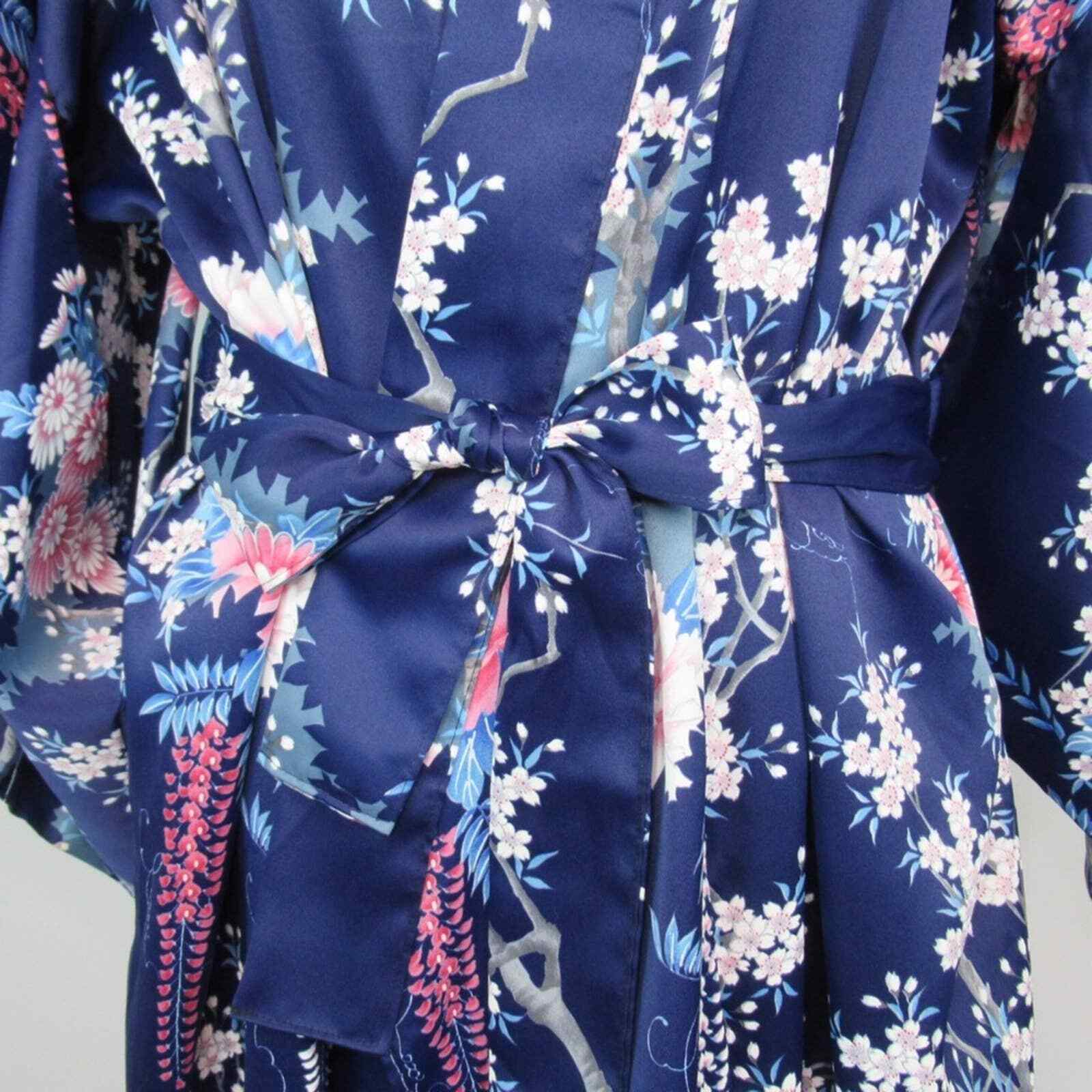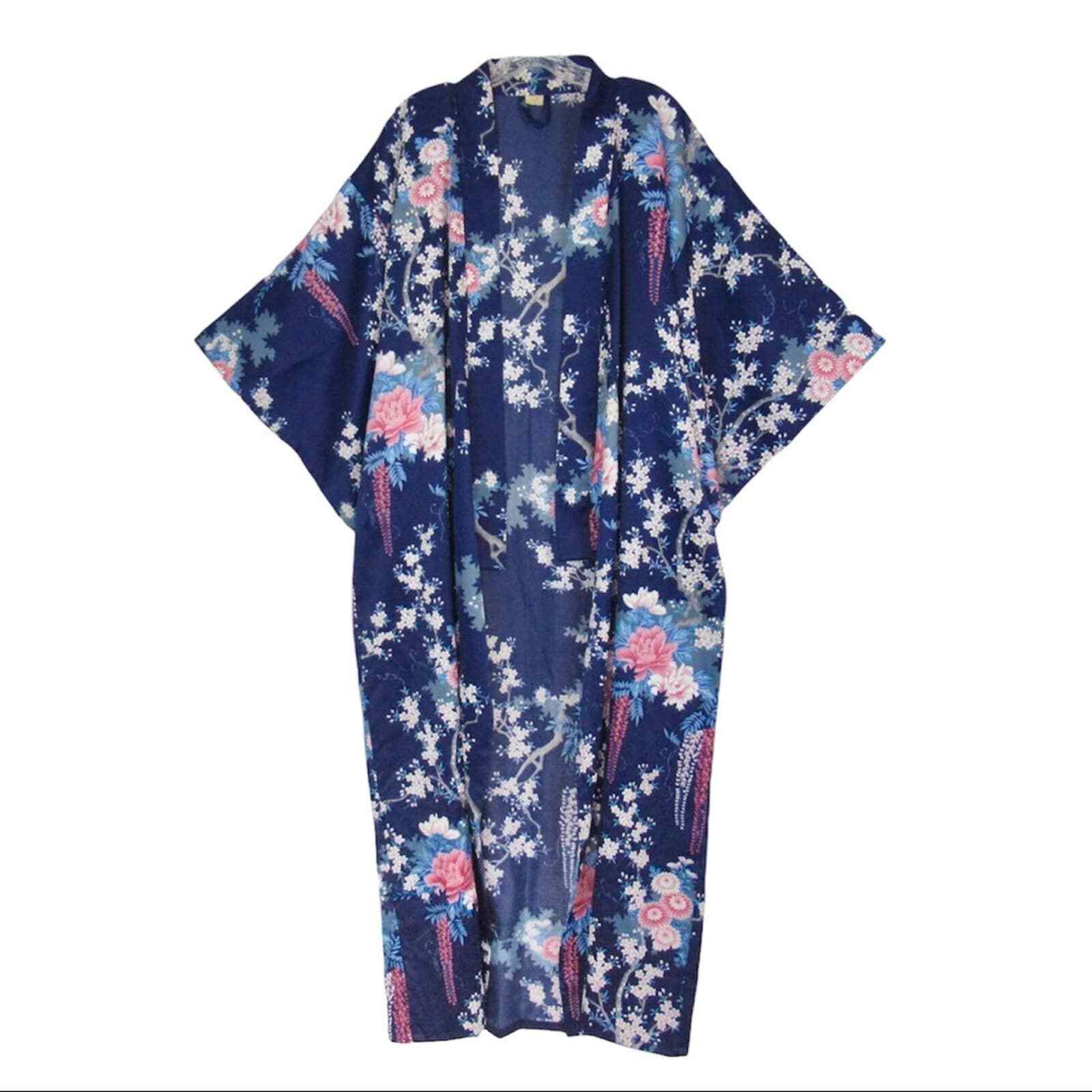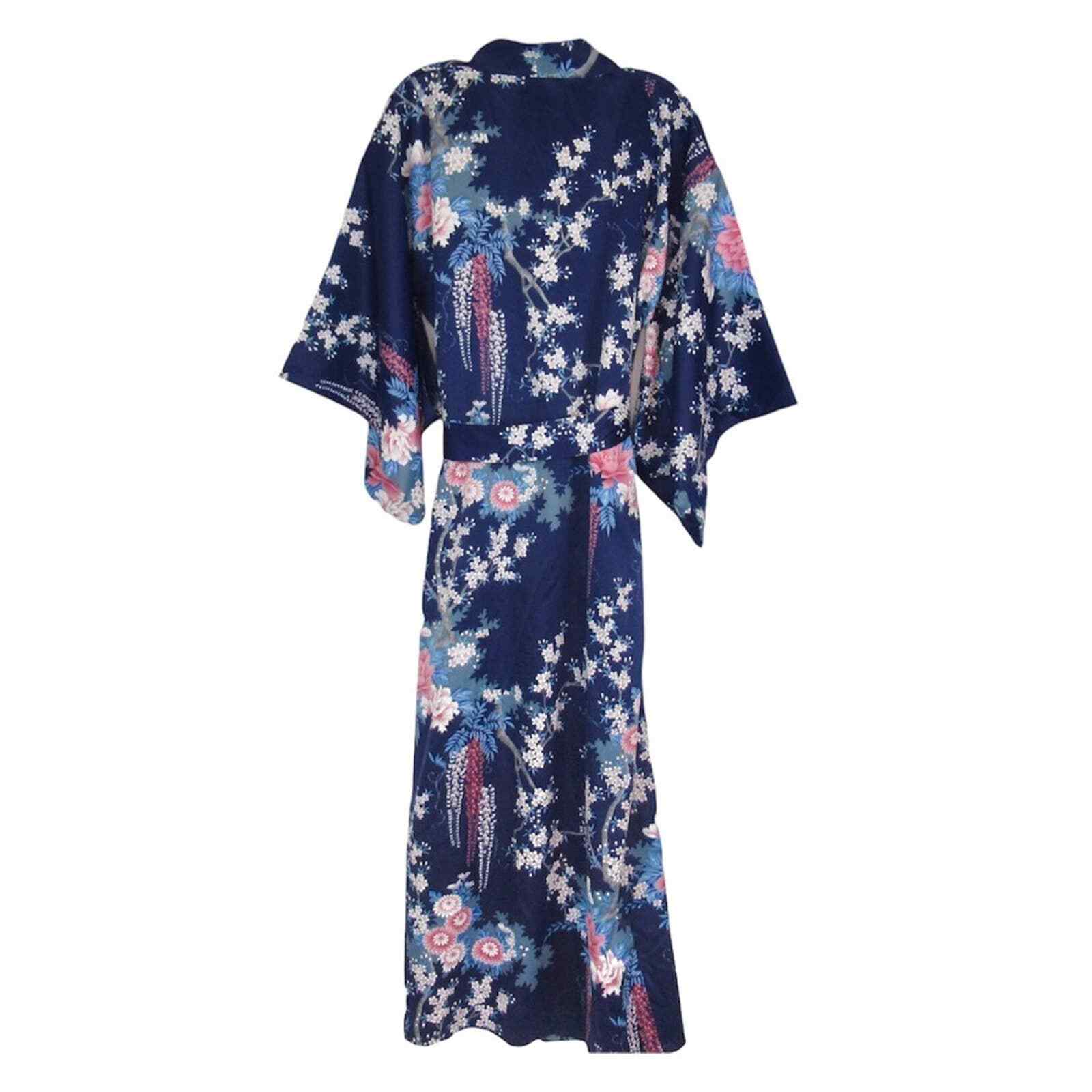 как выглядит Vintage Authentic Japanese Floral Cherry Blossom Kimono Long Robe OS фото