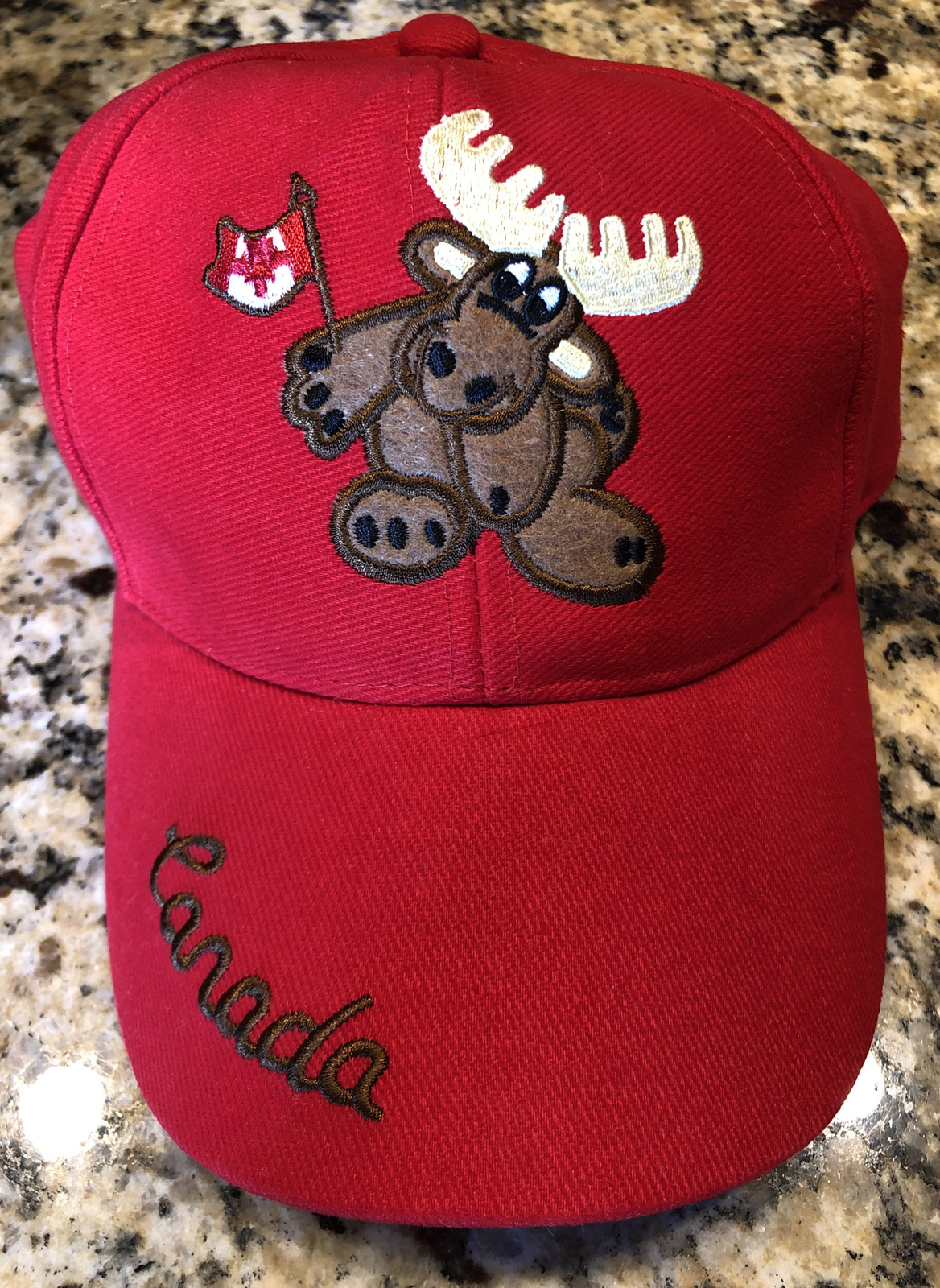 Youths Adjustable Red Canada with Moose and Flag Emblems Baseball Style Hat
