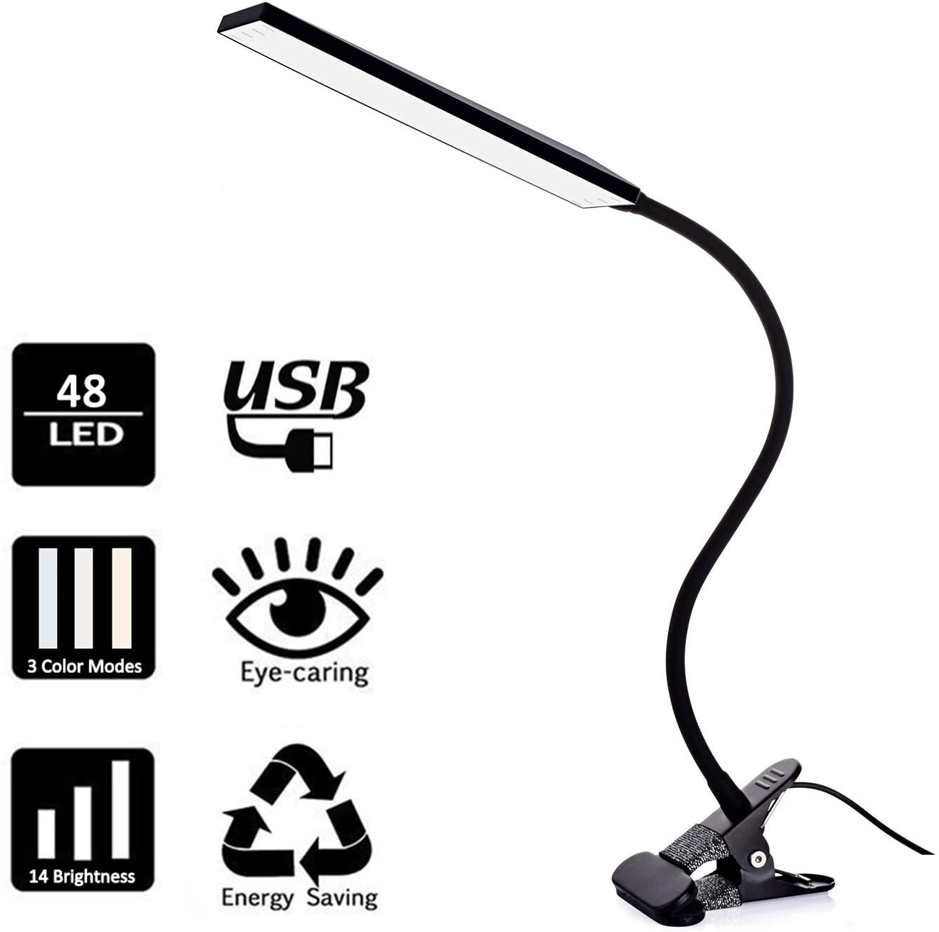 48LED USB LED Dimmable Clip On Desk Lamp Reading Table Night Light