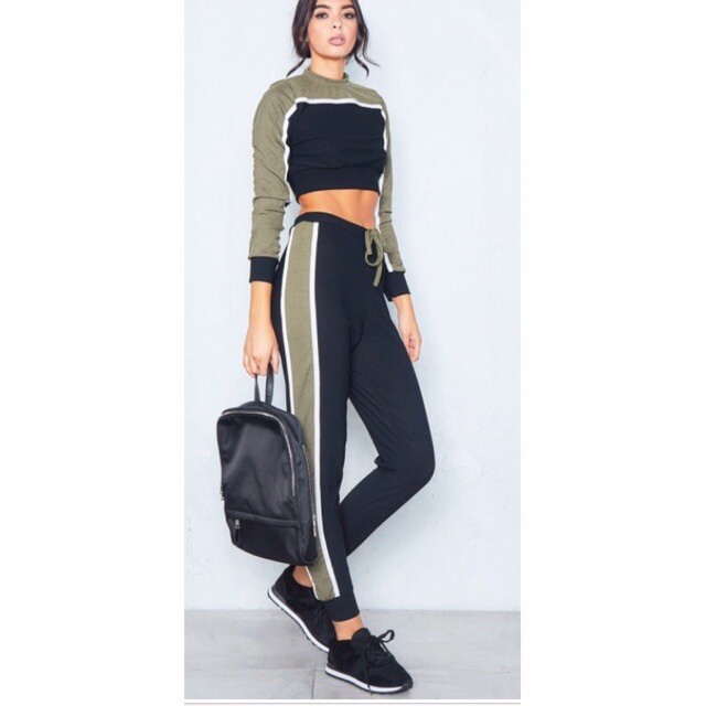 как выглядит Two Piece Loungewear Set Khaki-White-Black фото