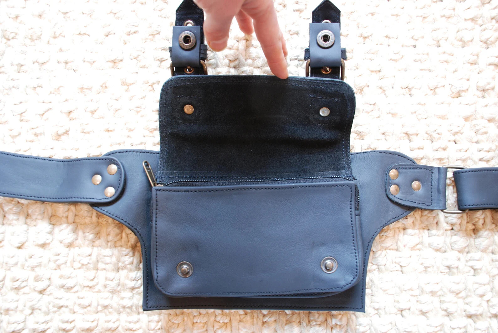 Black Leather Waist Pack Festival Belt Bag for Women Steampunk Utility Belt