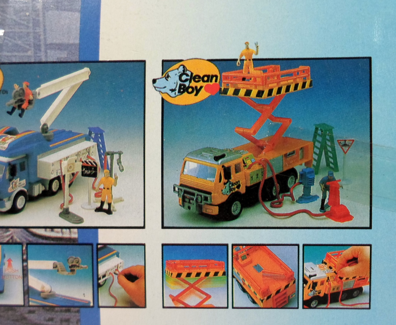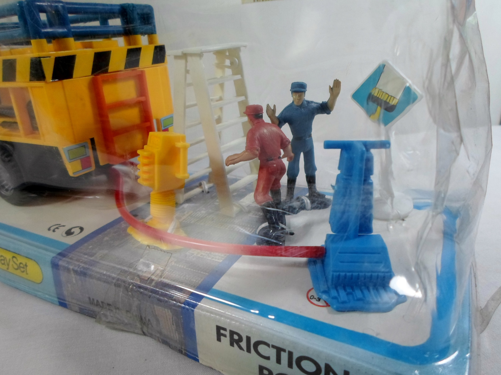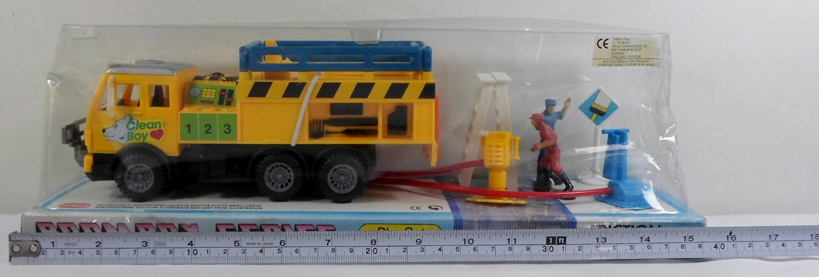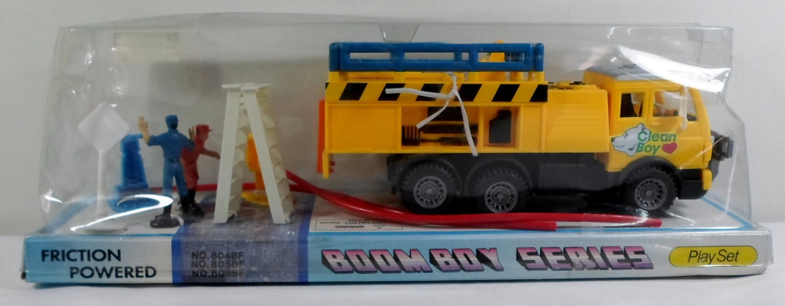 VTG FRICTION BOOM CLEAN BOY SERIES MAINTENANCE TOY TRUCK w/ TOY SOLDIERS MIP