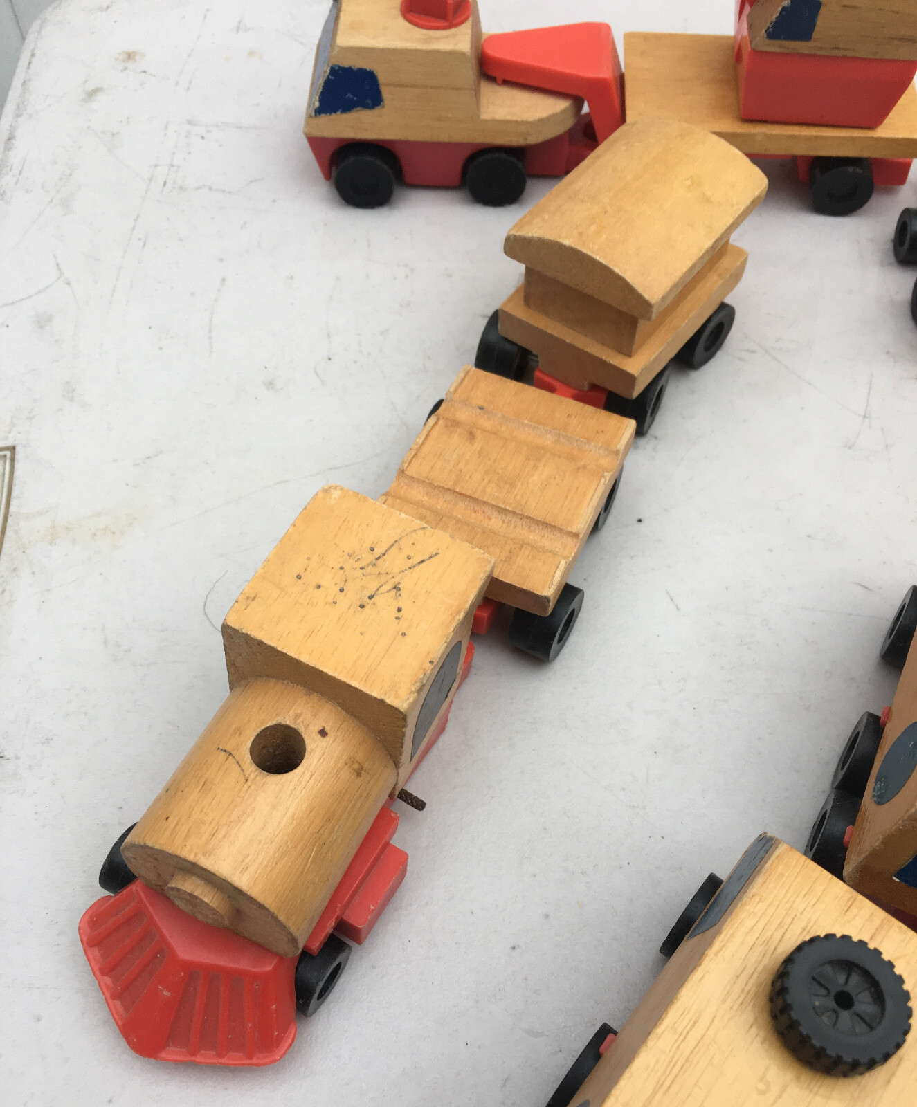 Mattel Wooden Push/Pull Train Cars Trucks Boats Trailer Vtg 70 s Wood Train Set