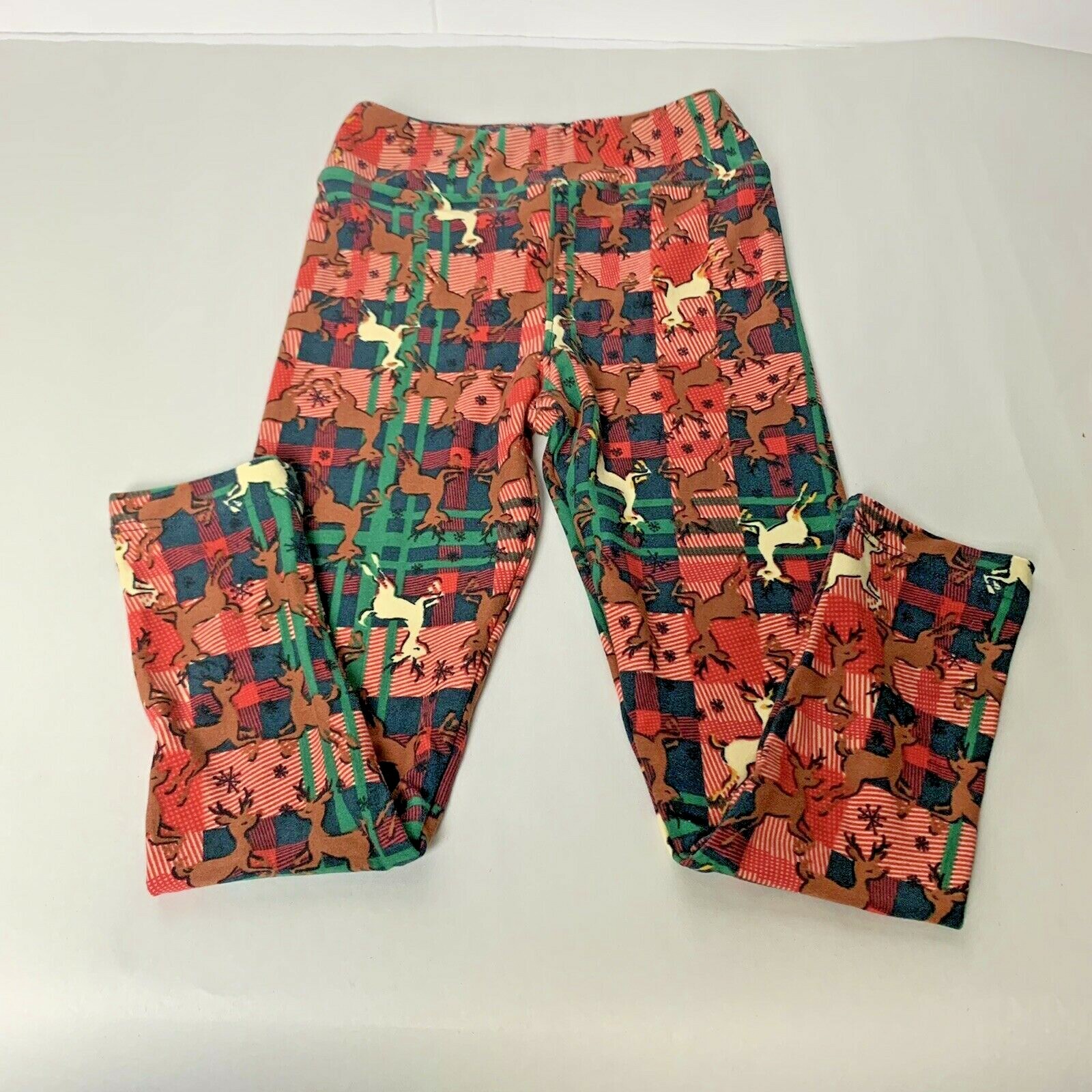 LuLaRoe Christmas Kids Leggings S/M Small/Medium Plaid Reindeer NWOT
