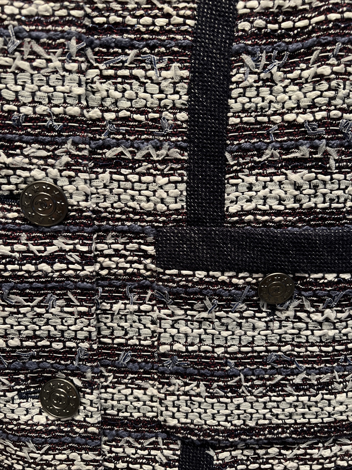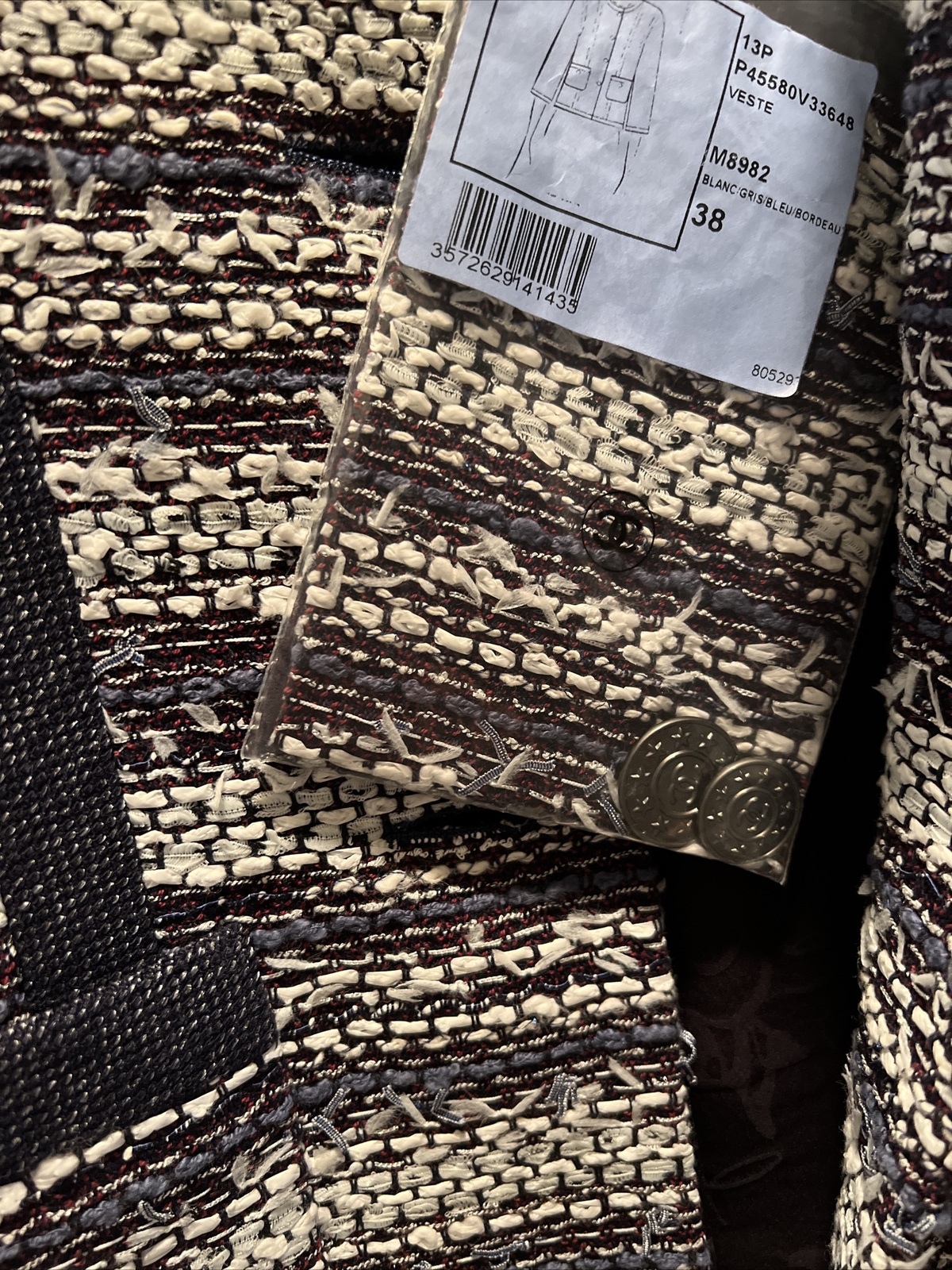 NWT Chanel Classic Coco Tweed Navy Bordeaux White Jacket CC Buttons M8982 Sz 38