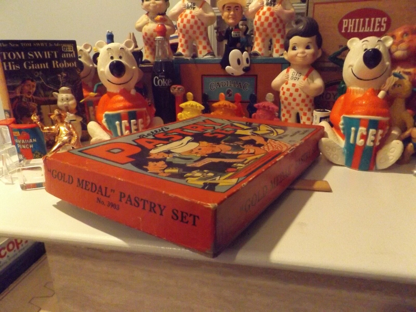 Vintage Childs Pastry Set Original Box Only / GREAT GRAPHICS TO DECORATE KITCHEN