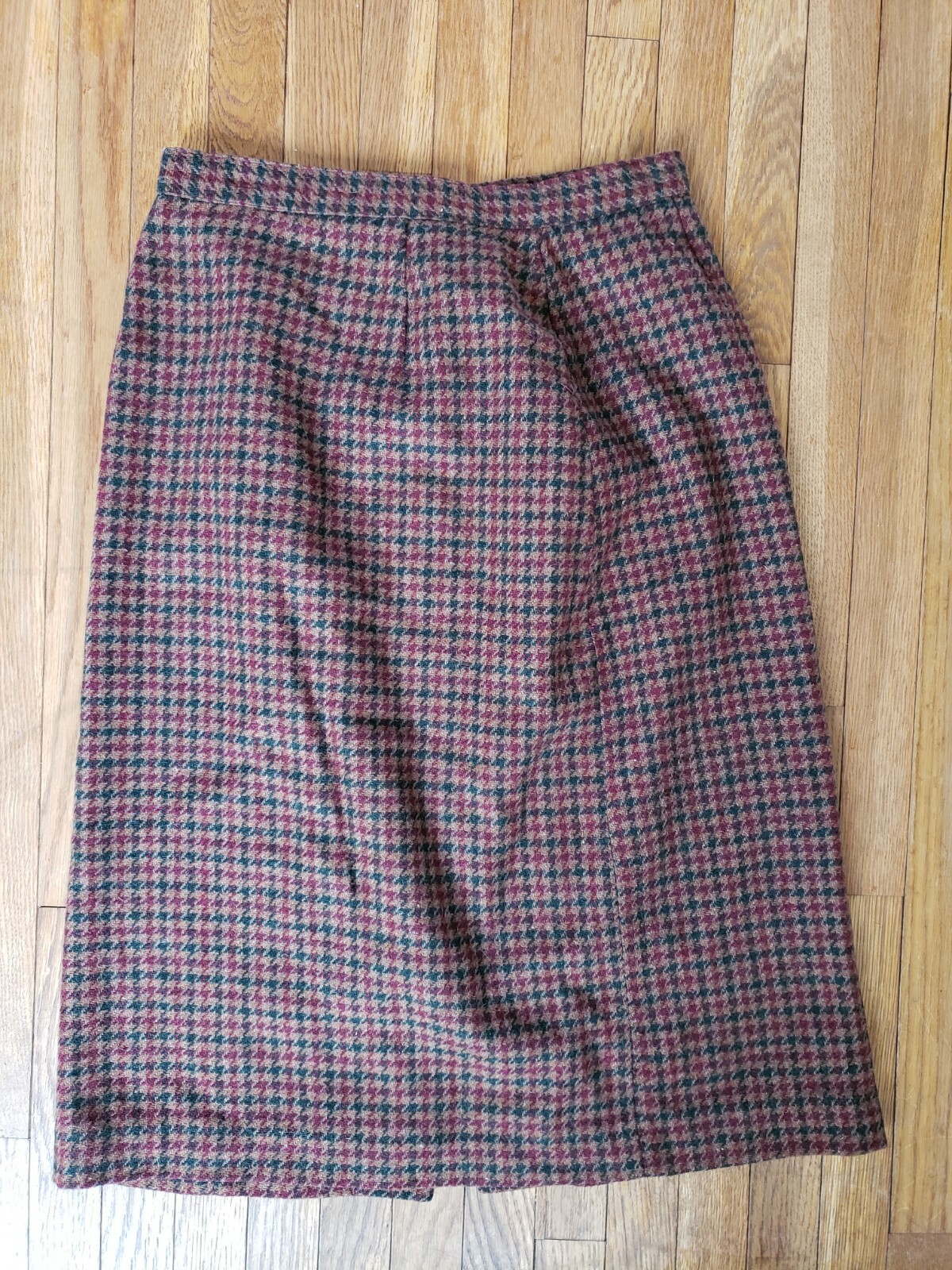 Vintage Midi Houndstooth Skirt Button Down Size 12 28 waist