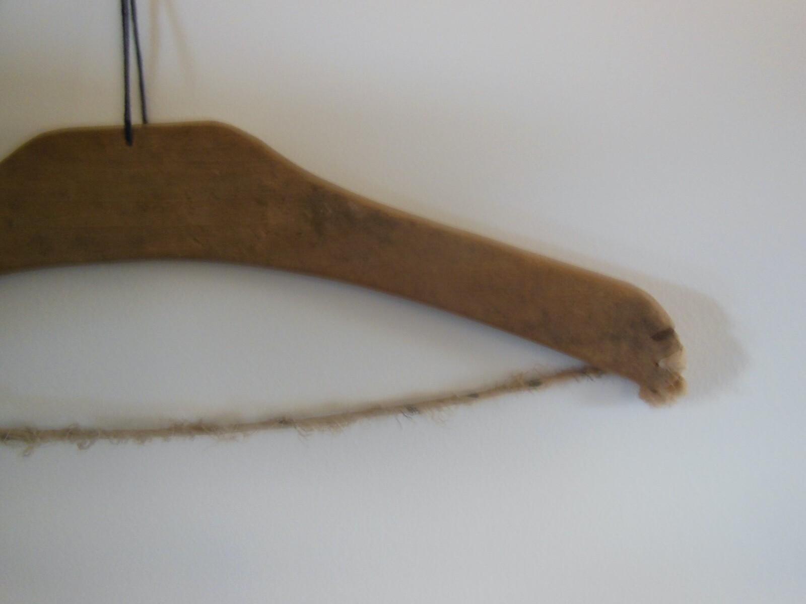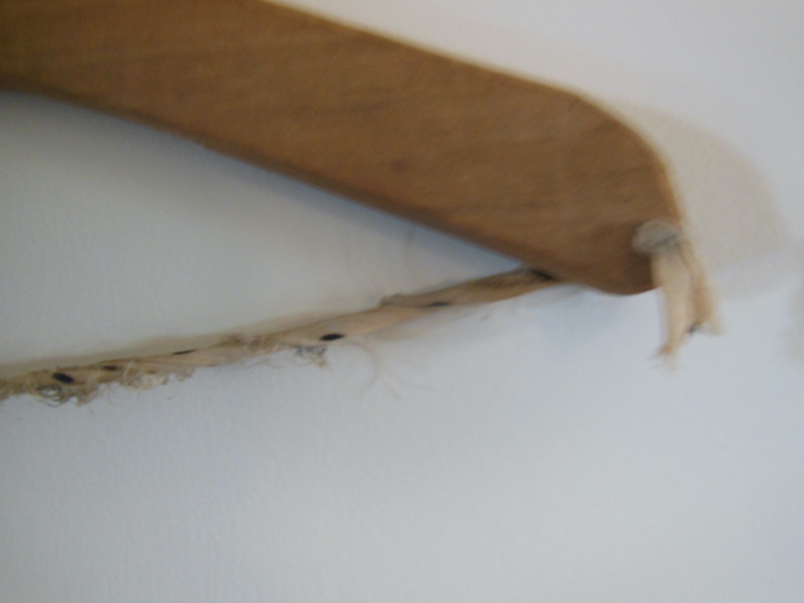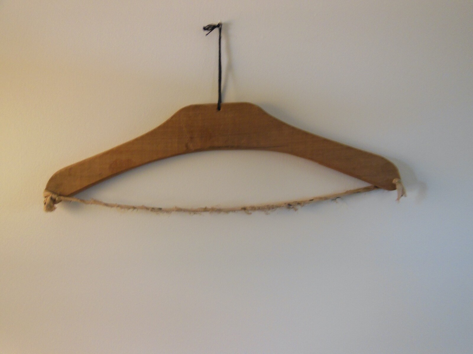 Primitive Wooden Clothes Hanger w Cloth Strip Vintage Hand Made Rustic Antique